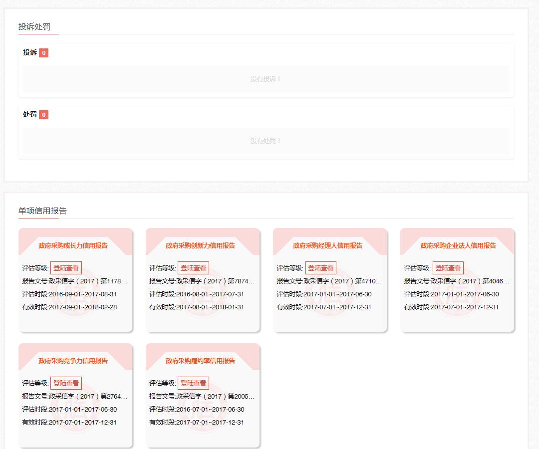 四、投诉处罚详情和单项信用报告