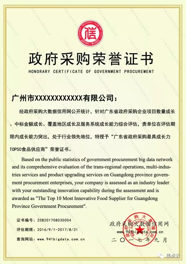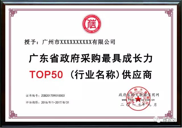 其中包括综合信用、节支率、竞争力、履约率、创新力、成长力等政府采购信用报告。