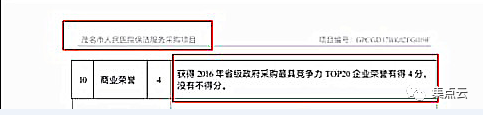 招标文件评分项内容:获得2016年省级政府采购最具竞争力TOP20企业荣誉得4分,没有不得分