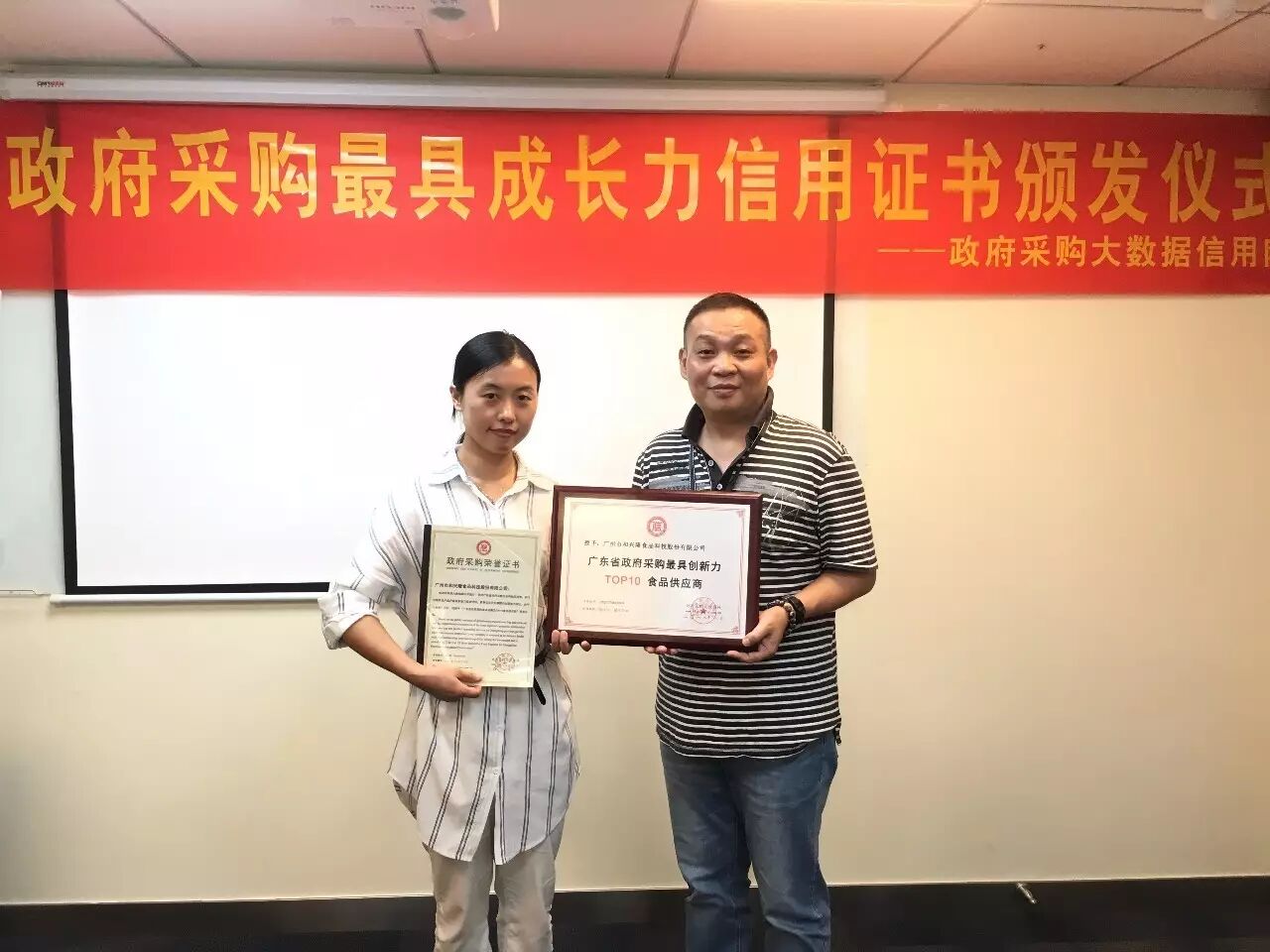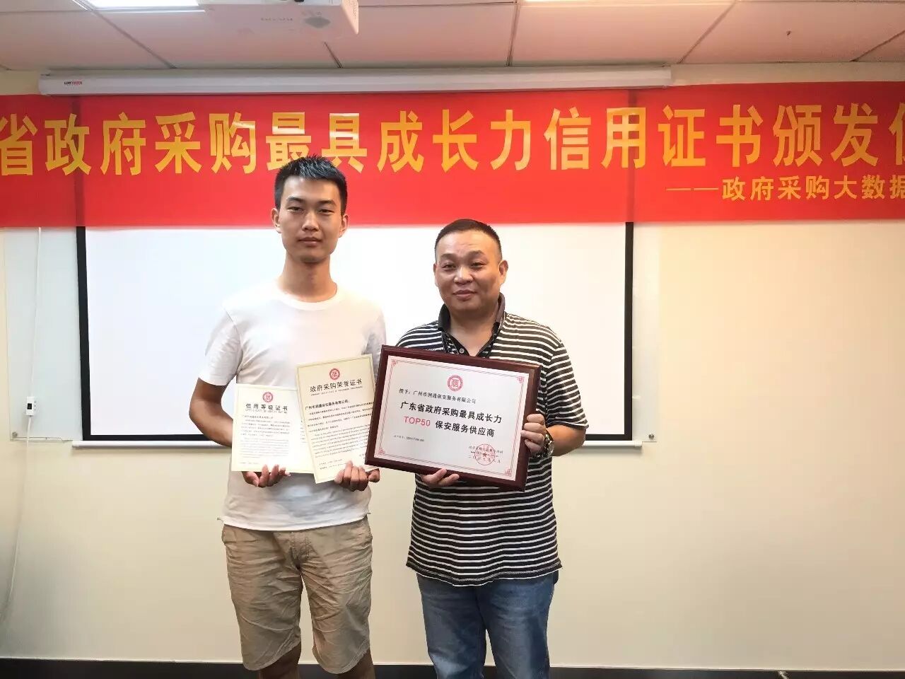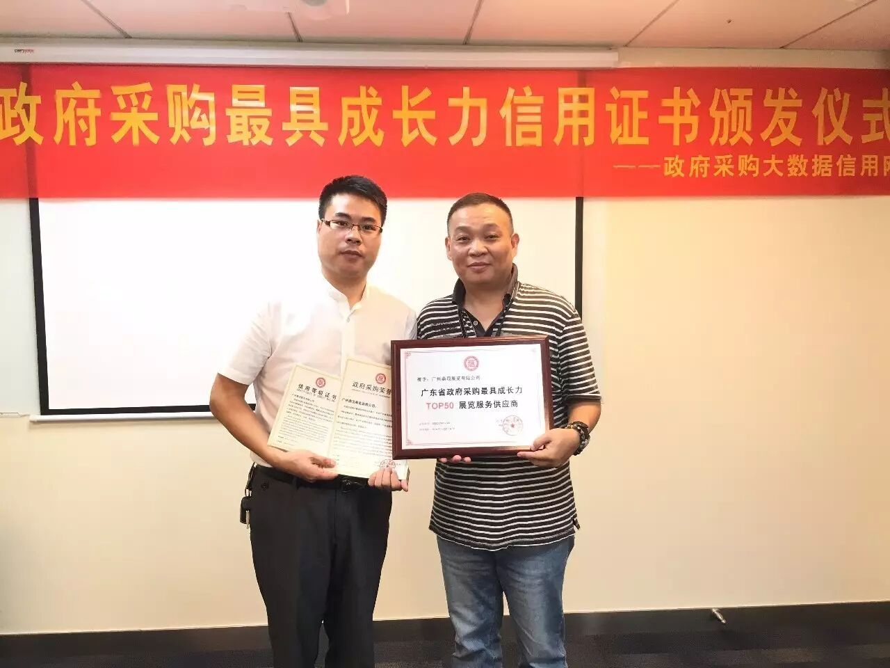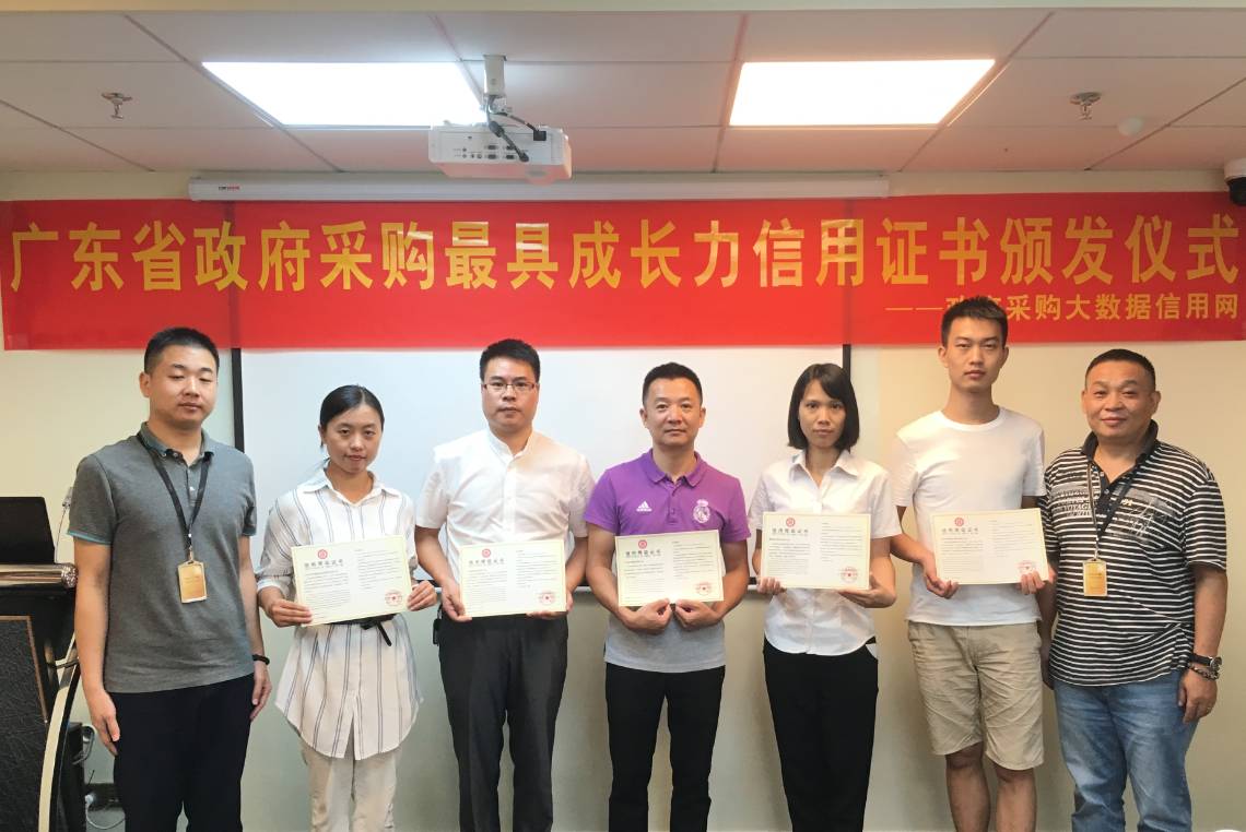 2017年9月20日下午15:00整,由广东省政府采购大数据研究院主办的“广东省政府采购最具成长力供应商信用证书颁发仪式”在广州市越秀区环市东路粤海大厦5楼集点科技(独立第三方信用服务机构)会议厅隆重举行。本次排名结果由广东省政府采购大数据研究院依托大数据搜索技术对广东省政府采购企业行为大数据采集分析整理得出,经政府采购大数据网向社会各界公示。