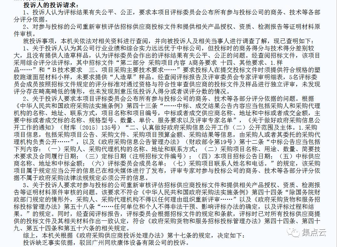 投诉缺乏事实依据,驳回广州同欣康体设备有限公司的投诉。