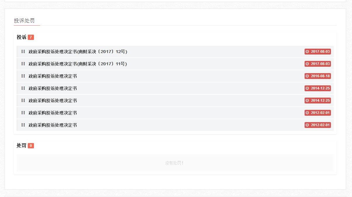 政府采购企业处罚信息和质疑投诉处理信息实时查询。