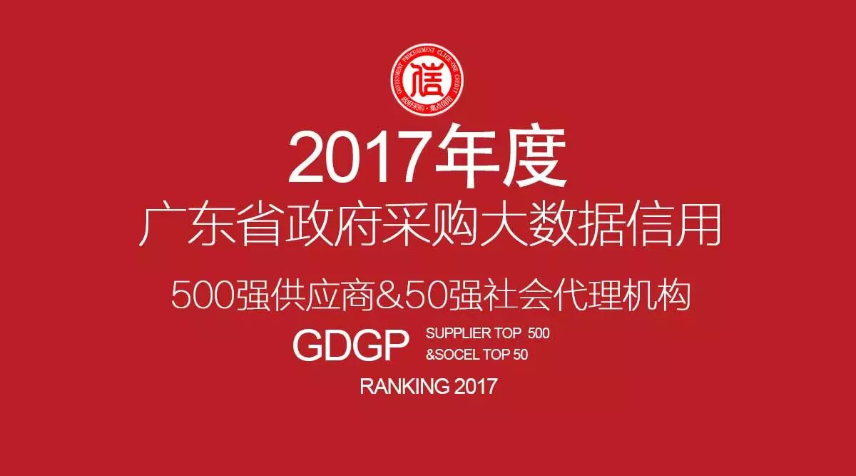 集点大数据信用|2017年度广东省政府采购大数据信用500强供应商&50强社会代理机构榜单公示