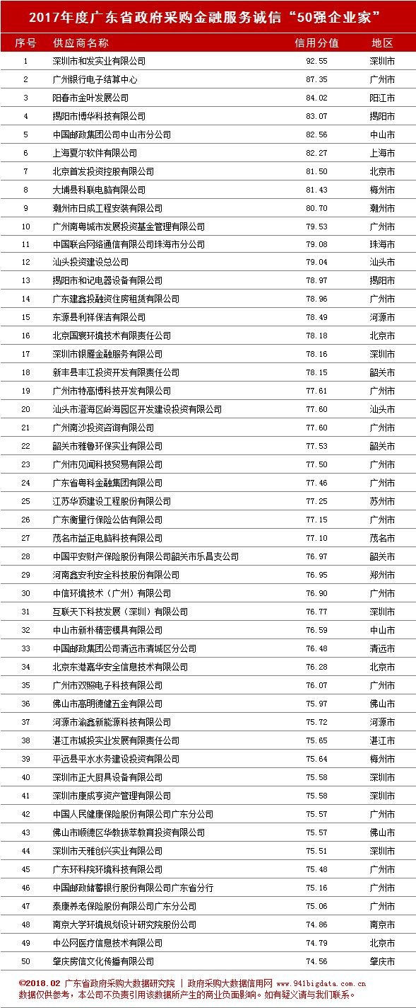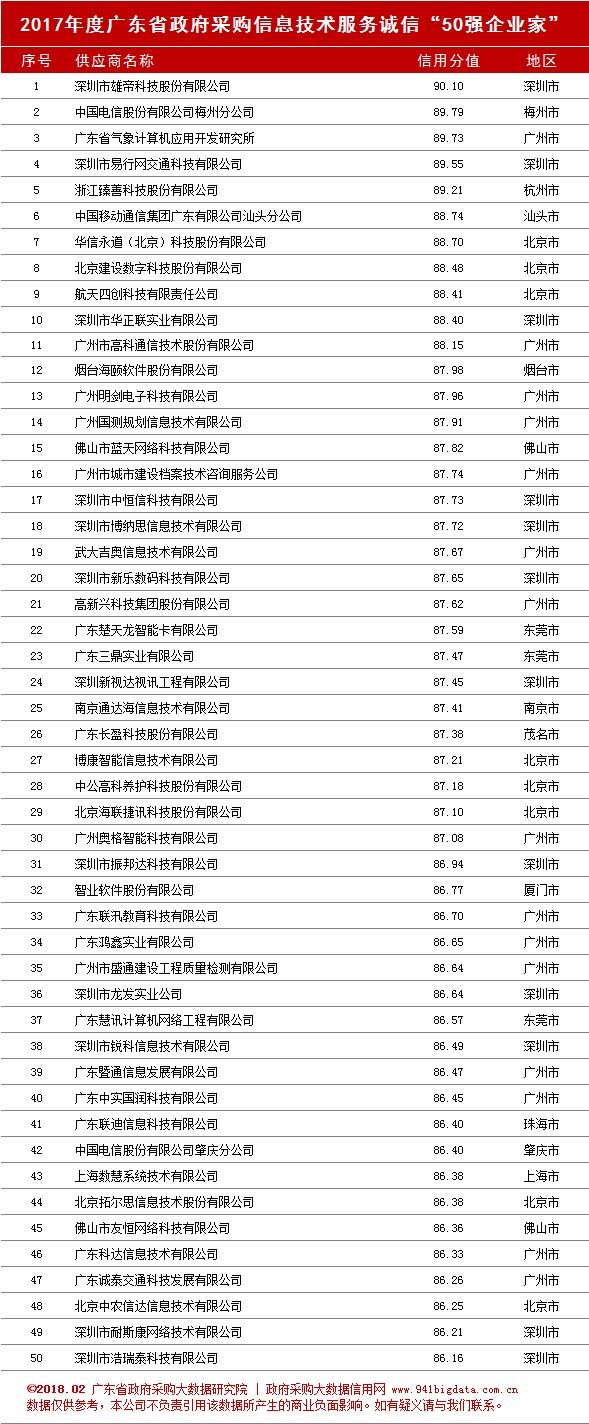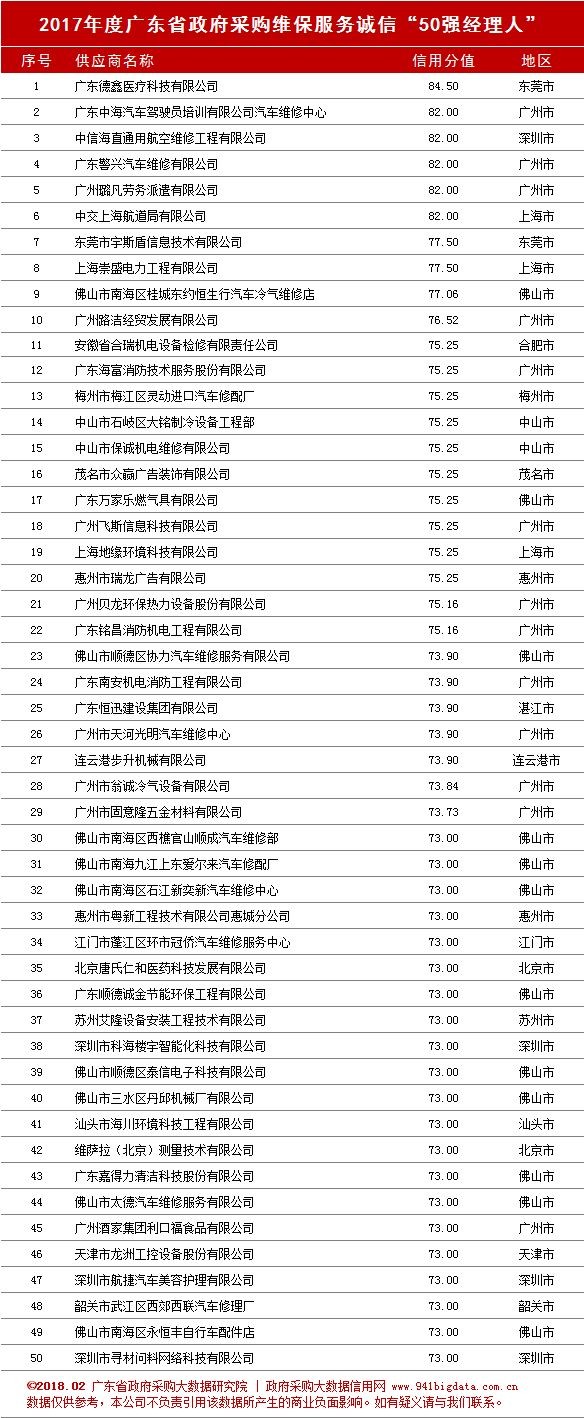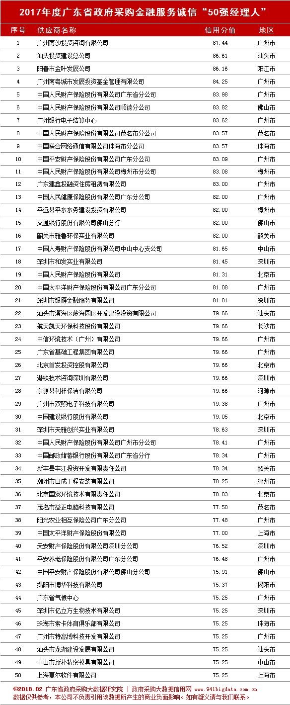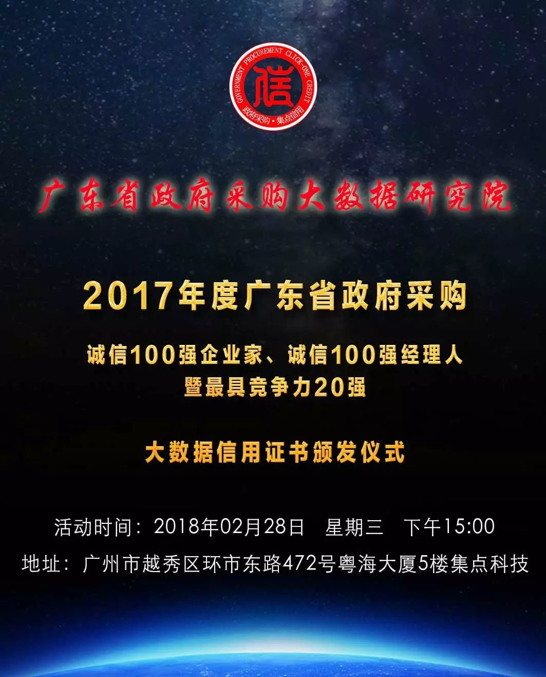 集点大数据信用|2017年度广东省政府采购诚信100强企业家&诚信100强经理人暨最具竞争力20强榜单公布