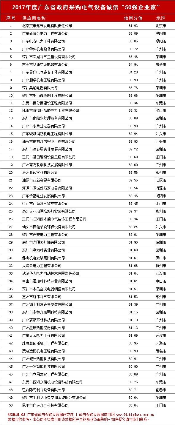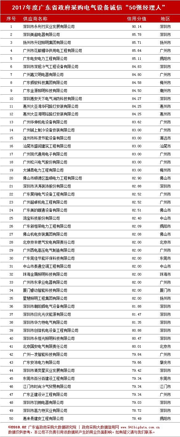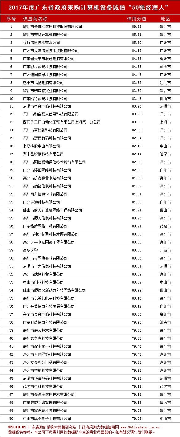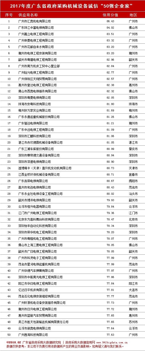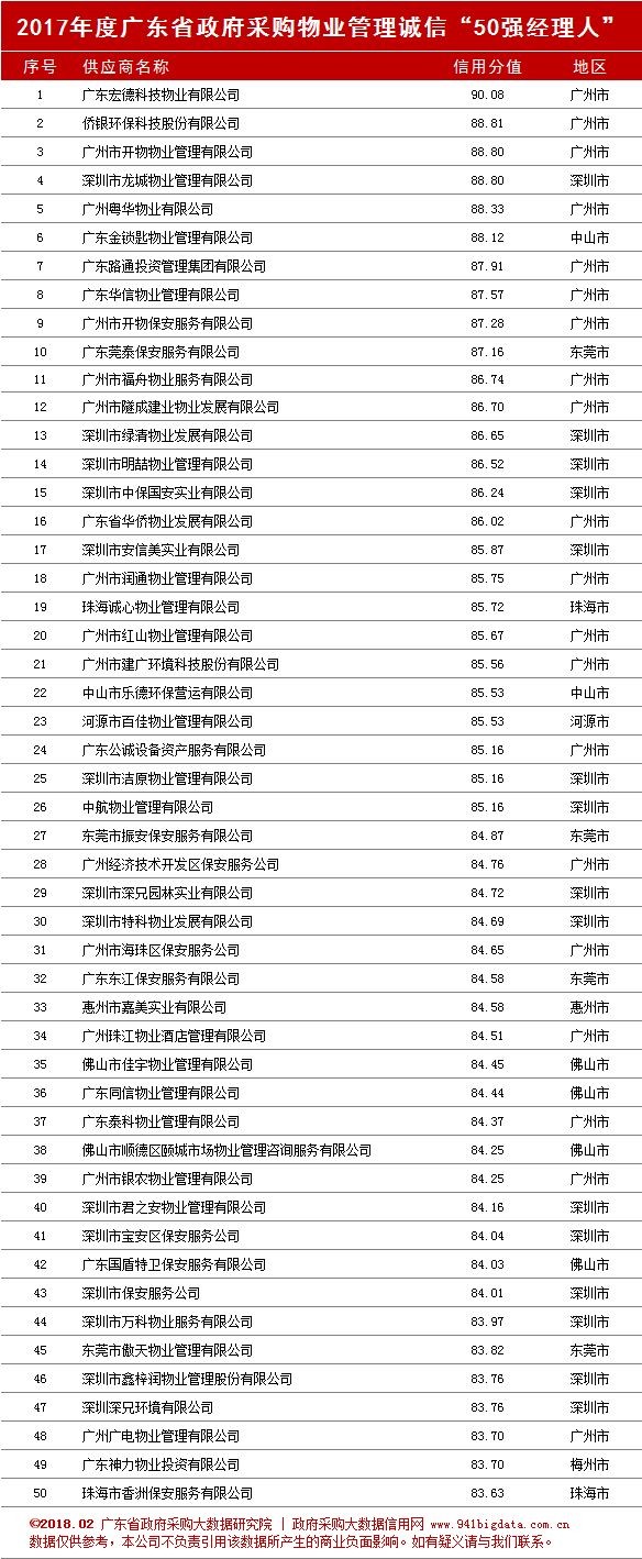 集点大数据信用|2017年度广东省政府采购诚信100强企业家&诚信100强经理人暨最具竞争力20强榜单公布