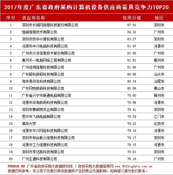 【115】计算机设备供应商“最具竞争力20强”榜单&地区分布