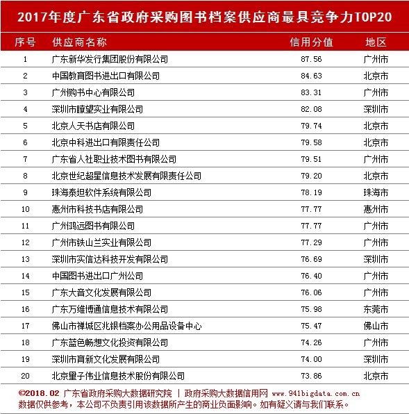 【125】图书档案供应商“最具竞争力20强”榜单&地区分布