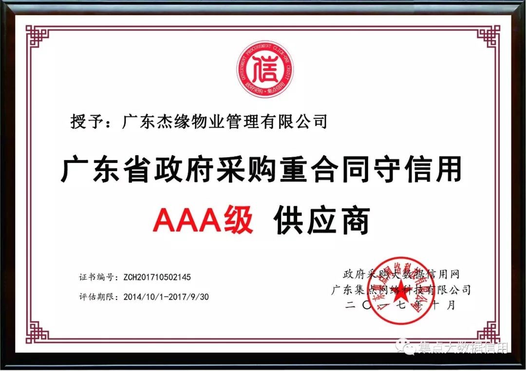 杰缘物业政府采购企业诚信指数