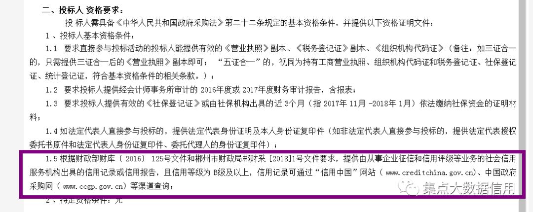 集点大数据信用|热烈祝贺集点信用证书顺利通过郴州市财政局政府采购项目投标资格审查