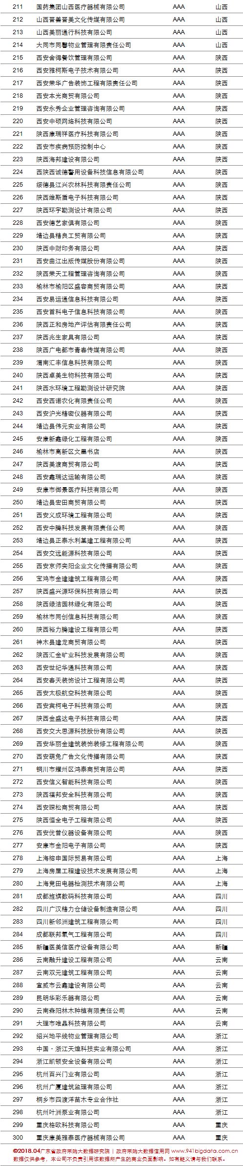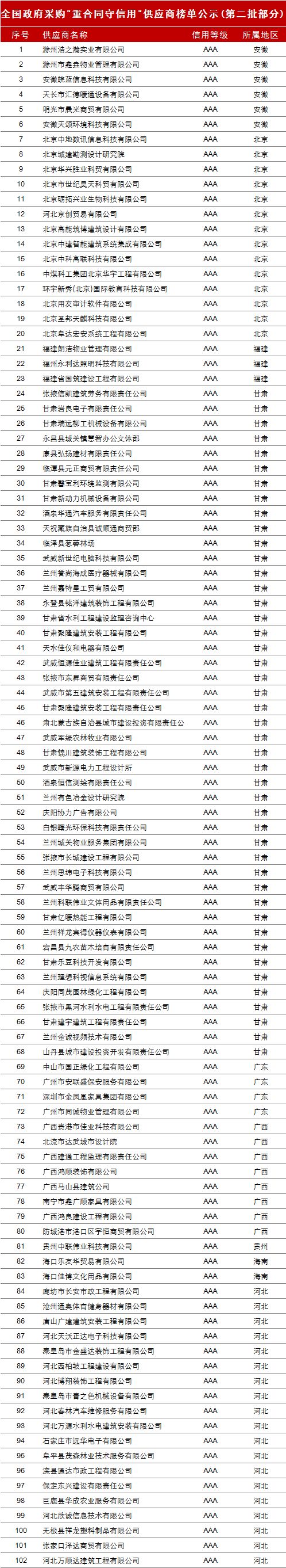 【2】全国政府采购社会代理机构各省市、自治区“重合同守信用”供应商榜单公示(第二批)