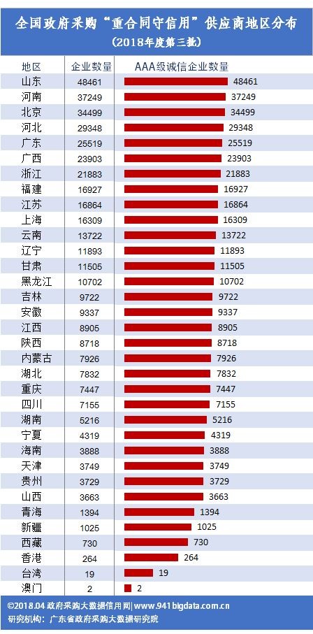 集点大数据信用|全国政府采购供应商"重合同守信用"榜单公示(第三批累计数量57万家)