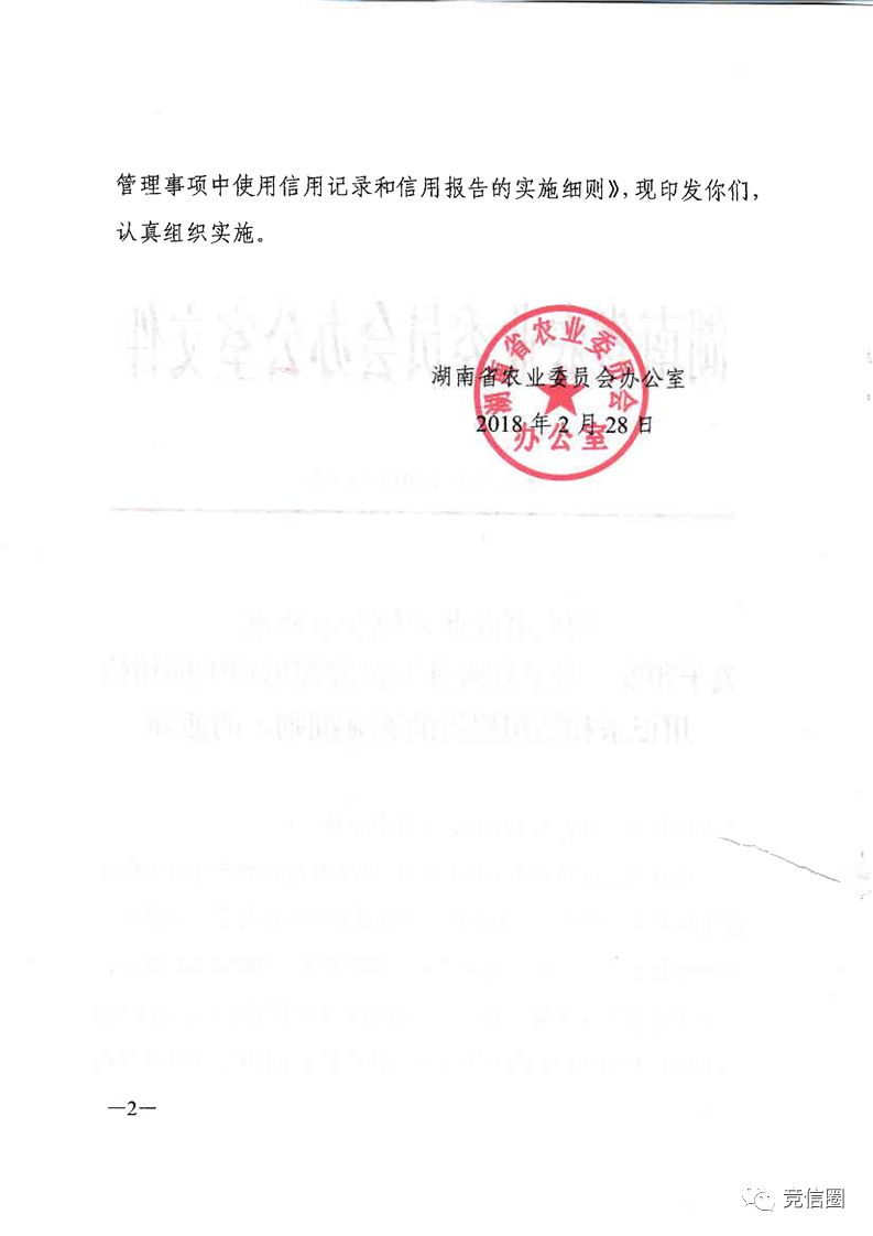 2018)湖南省农委:要求相关市场主体提供由第三方信用服务机构出具的信用记录和信用报告