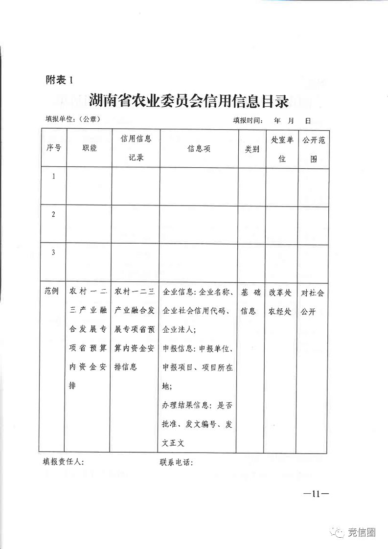 附表:1.湖南省农业委员会信用信息目录