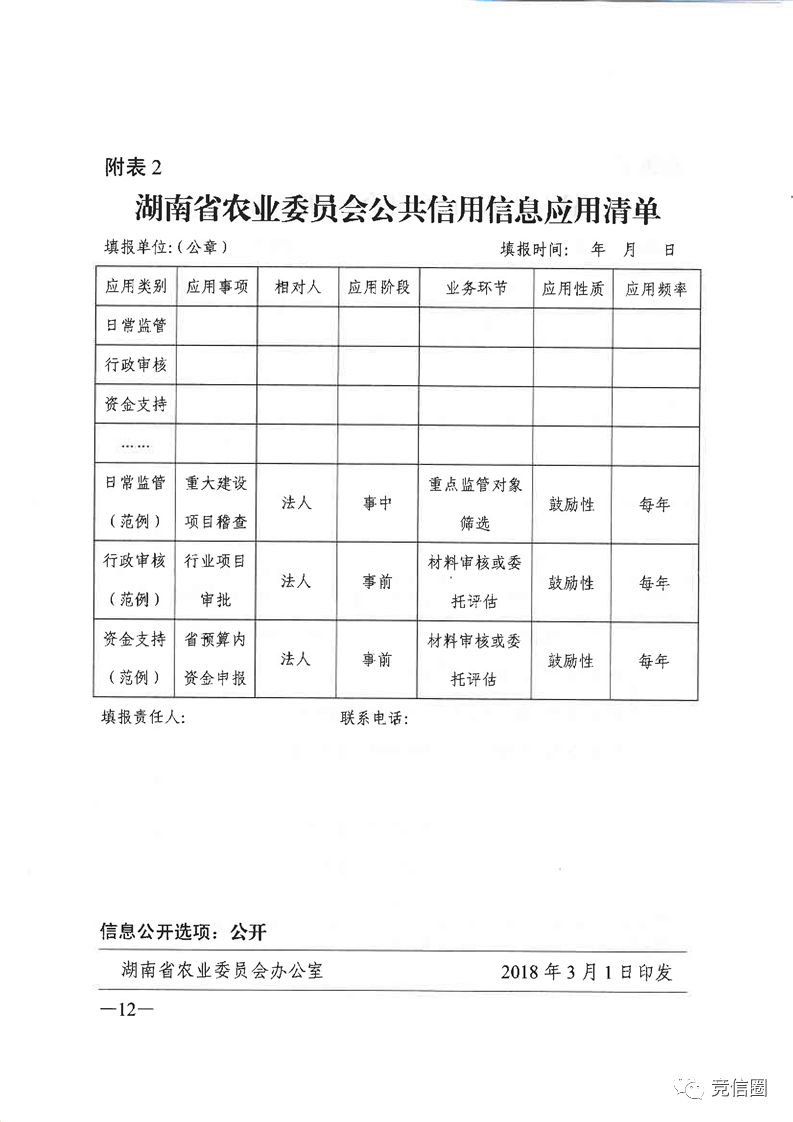 2.湖南省农业委员会公共信用信息应用清单