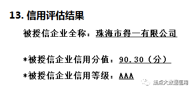集点大数据信用依据企业偿债能力、企业履约能力、企业违规违法情况、企业法人及高管的芝麻信用、企业无犯罪记录、企业管理行为以及企业历史信用等多个维度信息全面对企业信用情况进行大数据分析评价,经科学评估的大数据信用评级更加完整体现企业出的整体综合资信状况!