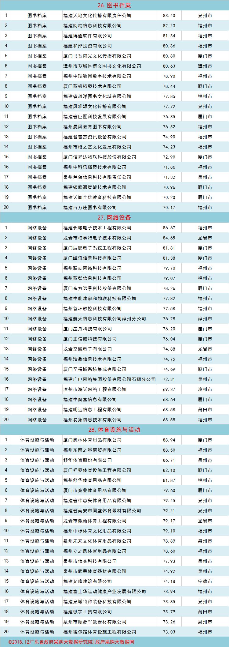 政府采购大数据|2018年度福建省政府采购民营企业品牌力百强榜单发布