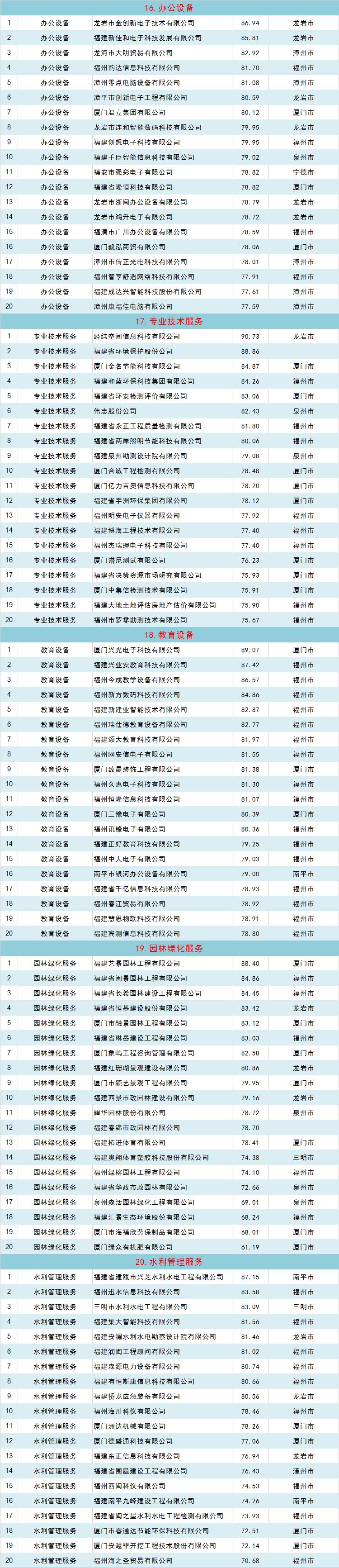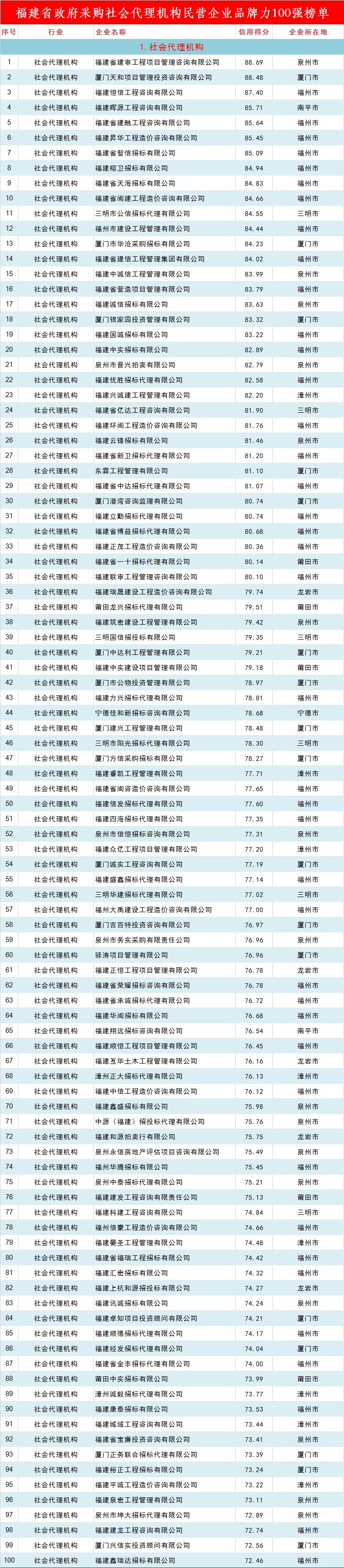 福建省政府采购最具品牌力民营企业榜单