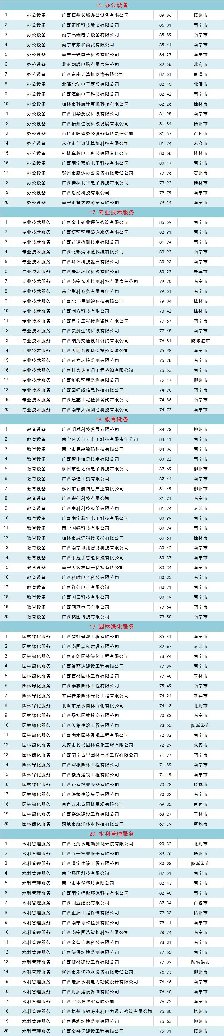 广西壮族自治区政府采购最具品牌力民营企业榜单