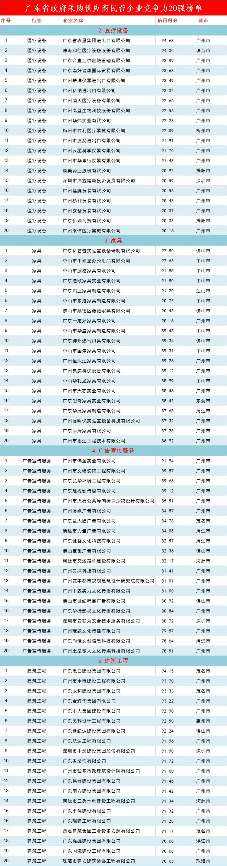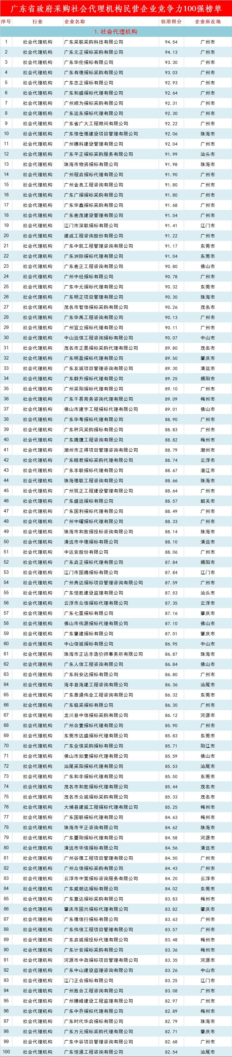 广东省政府采购最具竞争力民营企业榜单