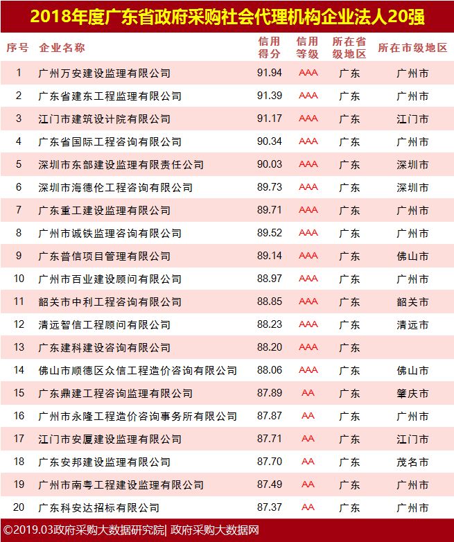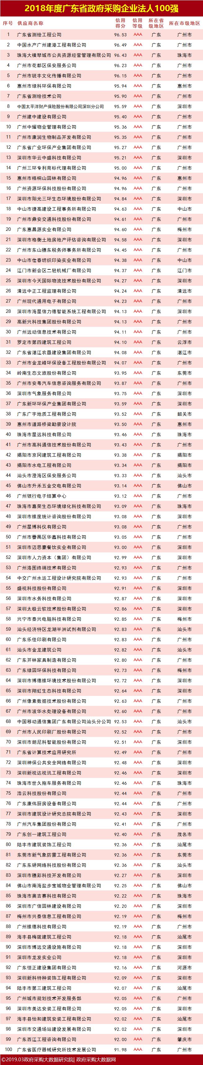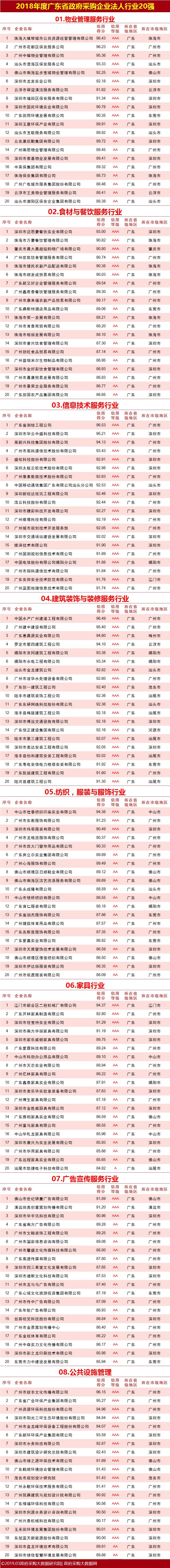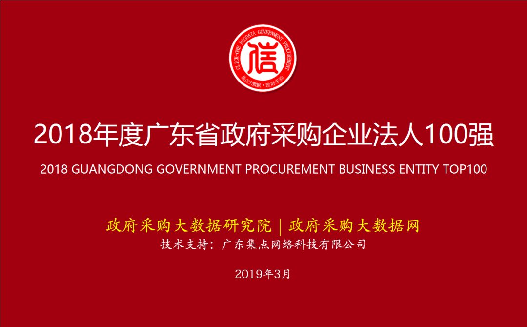 政府采购大数据|2018年度广东省政府采购企业法人诚信100强暨行业20强榜单发布