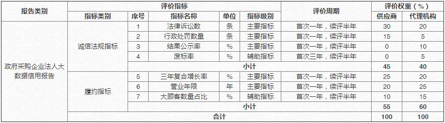 政府采购企业法人大数据信用评价指标体系表