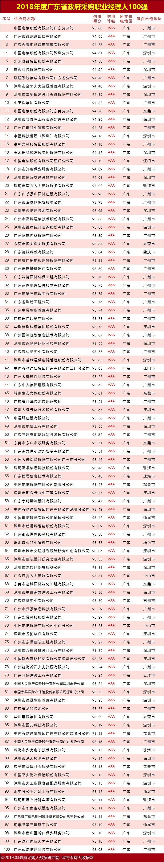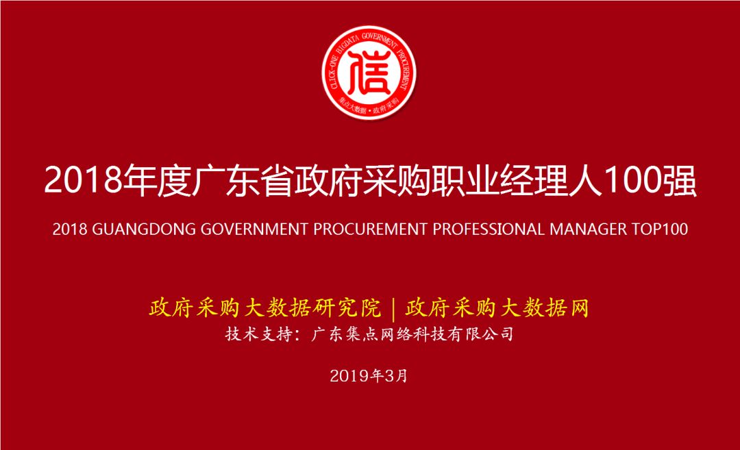 政府采购大数据|2018年度广东省政府采购职业经理人100强暨行业20强榜单发布