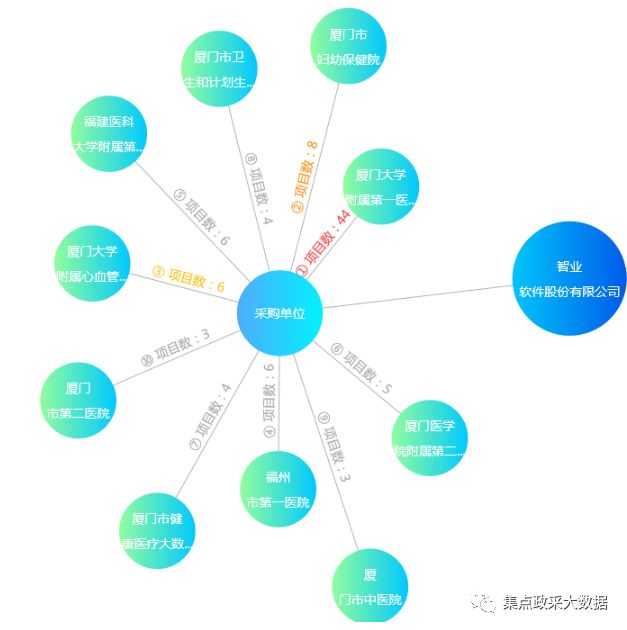 由政府采购大数据网震撼推出的”企业关联预警图”可视化可以监测到政府采购单位与供应商之间的合作频率、合作关系等情况。