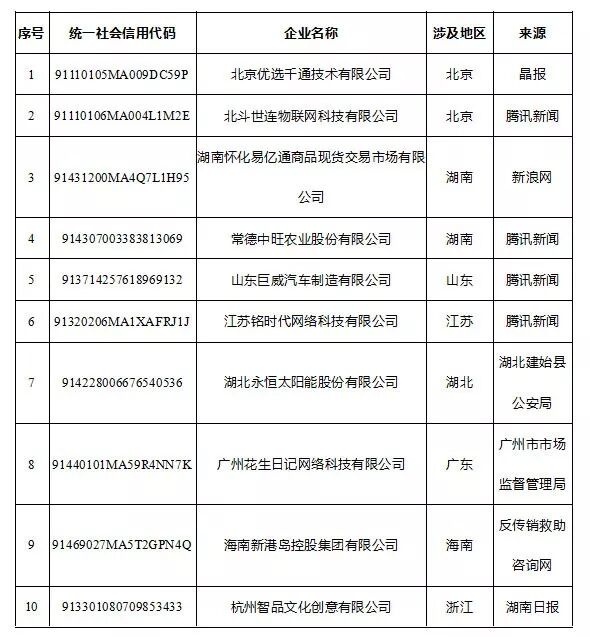 3月份媒体披露涉传销失信案例共涉及10家企业,分布在北京、山东、浙江、江苏、湖南、湖北、广东、海南等省份(见表1)。