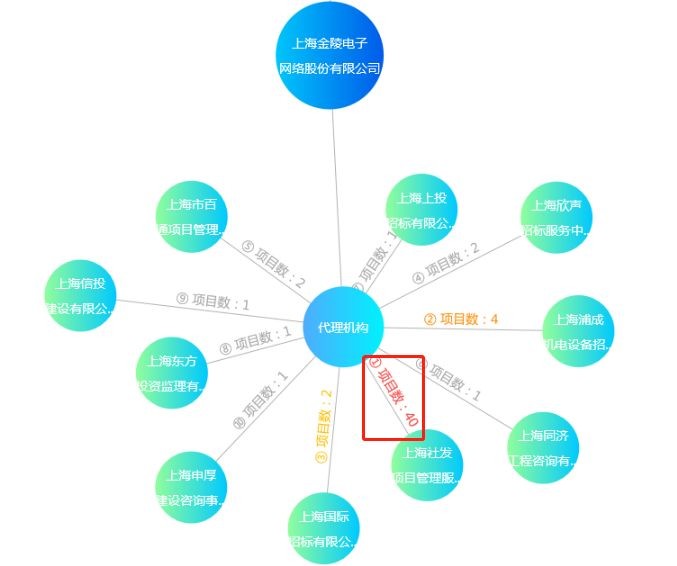 上海金陵电子网络股份有限公司两年(2017年05月01日~2019年04月30日)关联预警图显示出与它关联度最高的前十代理机构。其中合作频率最突出的代理机构是上海社发项目管理服务有限公司,中标项目数为40个,占该供应商总中标数的65.57%!上海金陵电子网络股份有限公司中标数集中度高。同时,教育系统占比高达95%!