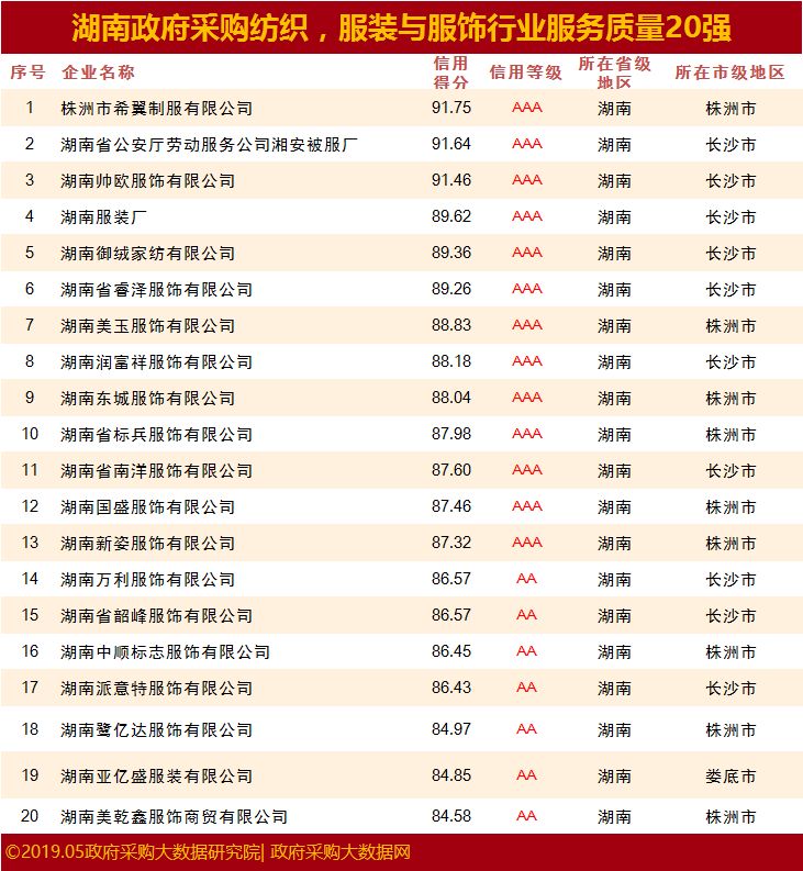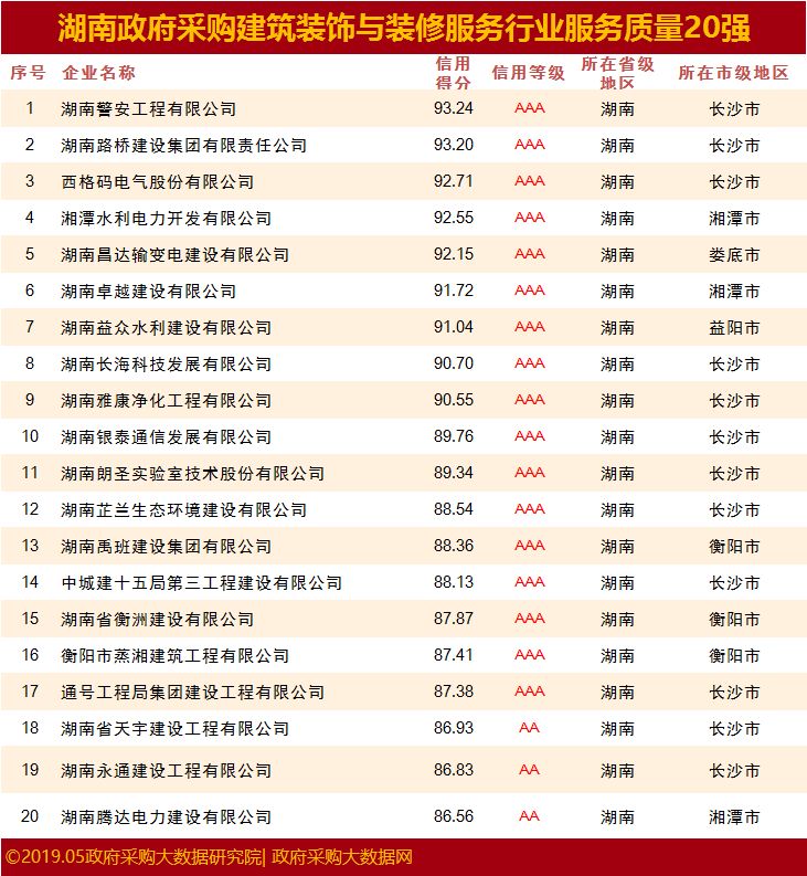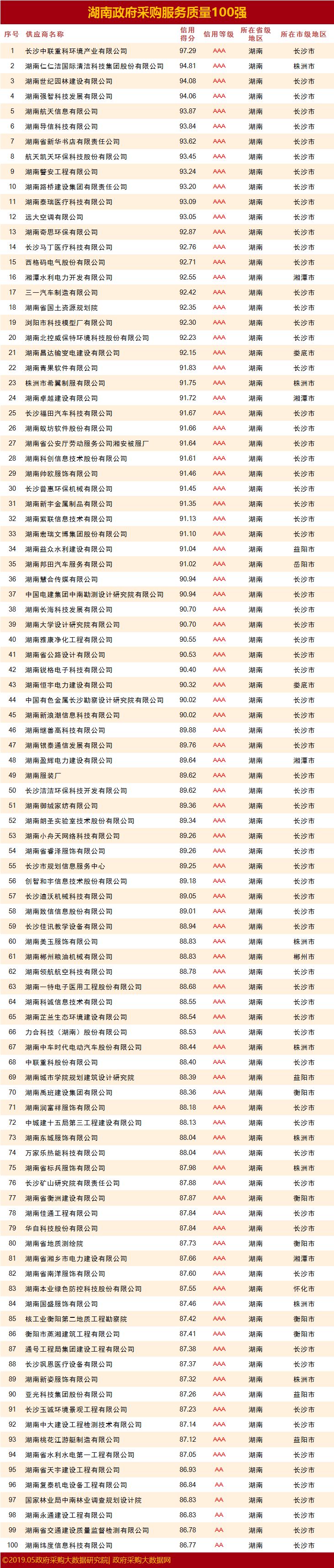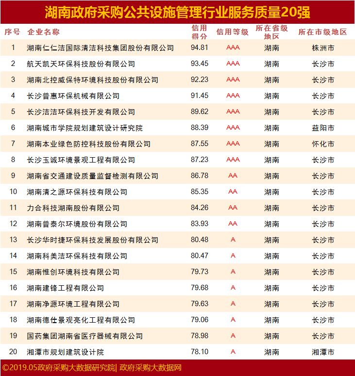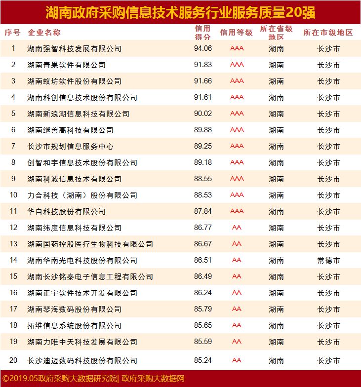 重磅|湖南省政府采购服务质量百强花落谁家& 行业20强究竟有谁?