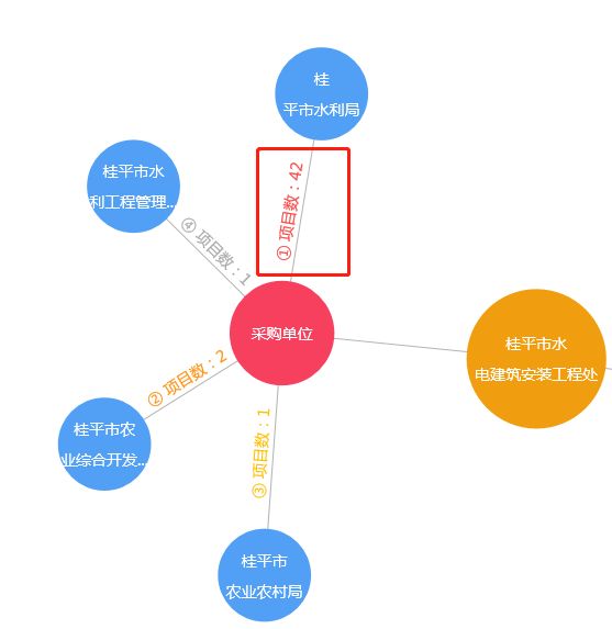 桂平市水电建筑安装工程处关联预警图监测出在各采购单位的中标数。其中合作最突出的采购单位是桂平市水利局。