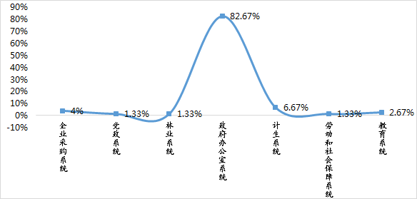 ②从采购系统看,政府办公室系统远超其它系统,占比高达82.67%,如下图: