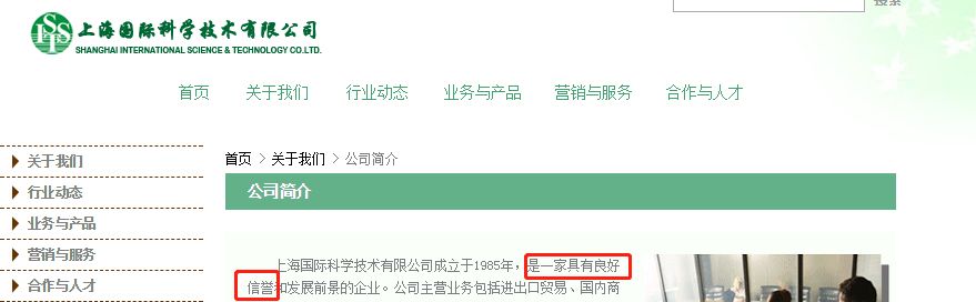 截图来自上海国际科学技术有限公司官网