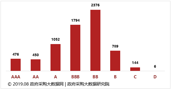 政府采购物业管理服务行业履约率大数据信用报告总体样本数量为7087家,其中A级及以上信用等级单位1978家,占总体样本的27.91%。B级及以上信用等级单位6937家,占总体样本的97.88%。政府采购物业管理服务行业绝大部分企业履约率信用表现良好。