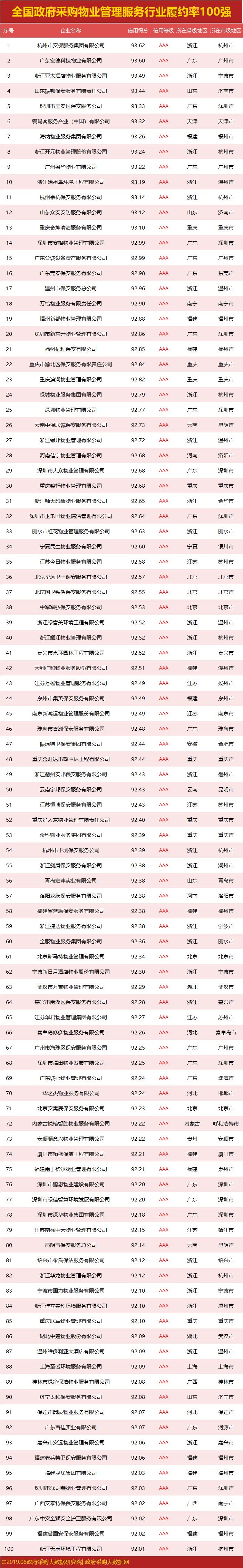 重磅!全国政府采购物业管理服务供应商履约率百强花落谁家?