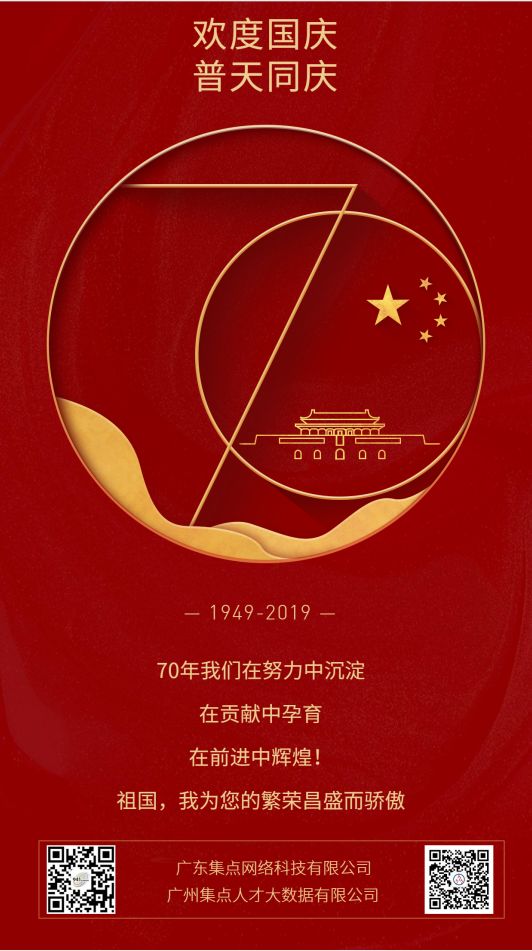 2019年10月1日是中华人民共和国成立70周年纪念日。庆祝中华人民共和国成立70周年大会10月1日举行。庆祝大会后,将举行盛大的庆祝中华人民共和国成立70周年阅兵式和群众游行。