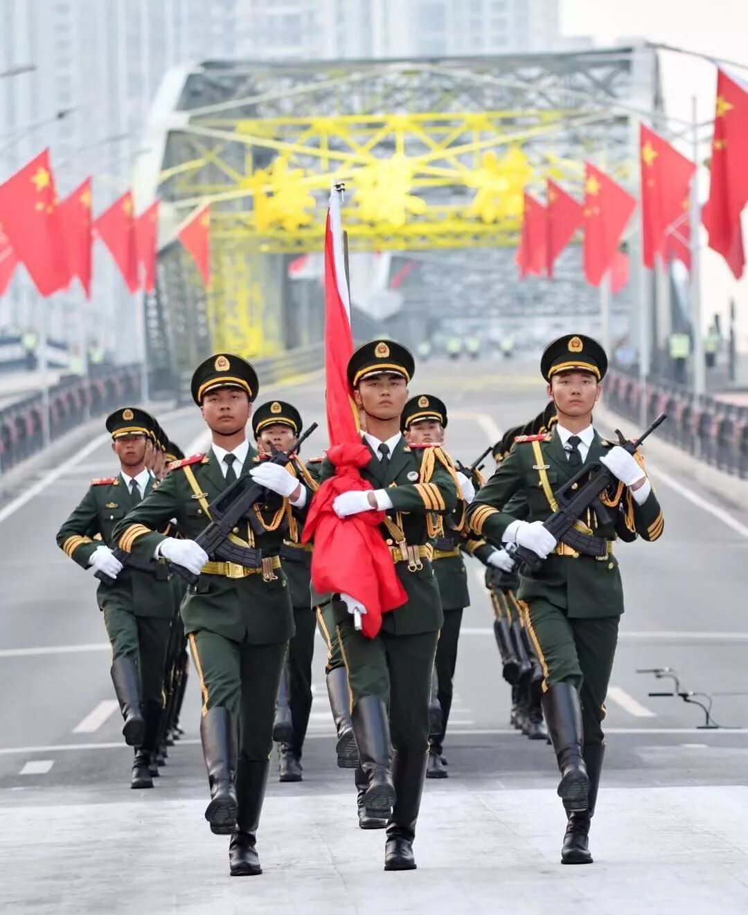 武警广东省总队机动支队由两支英雄部队组建而成,一支前身是东江纵队一部,一支是“攻坚老虎师”的传人。曾经参加过解放广州战役。经过二十多天的密集艰苦训练,他们力争以最好的状态,向中华人民共和国成立70周年升旗仪式献礼。