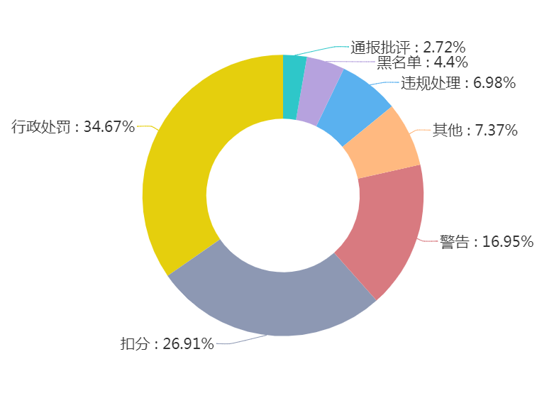 评审专家处罚数量在不断增加,2019年1-9月比2018年同期增长20.63%。其中,以行政处罚和扣分处理为主,占比超60%。可见,政府采购领域不断加强评审专家失信行为的惩治。从处罚数据来看,评审专家“未严格按照招标文件的标准和要求进行评审”和“未严格遵守纪律”的现象最为严重。