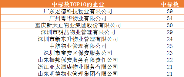 2019上半年政府采购物业管理行业中标前十企业