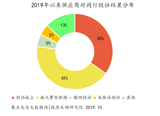 数据显示,2019年以来供应商投诉被认定“缺乏事实,投诉事项不成立”的占比高达42%,投诉成立的比重仅为35%。可见,供应商投诉成功率相对低下。