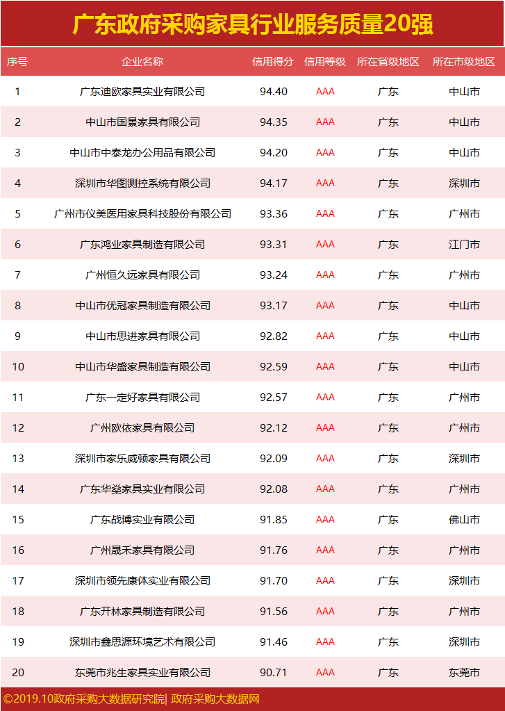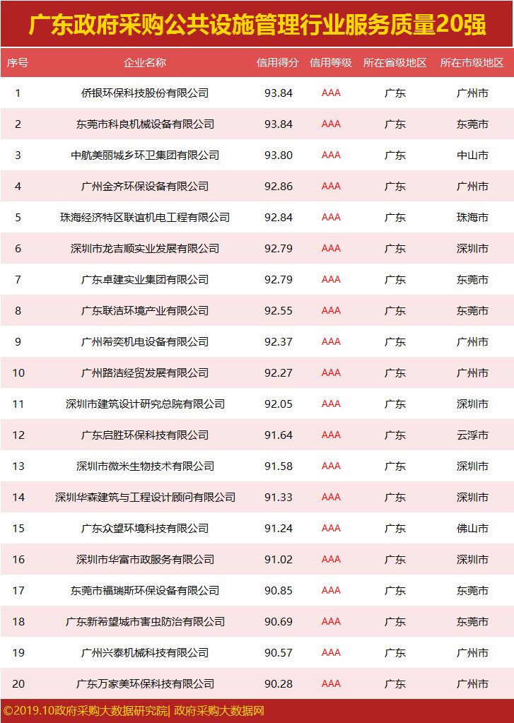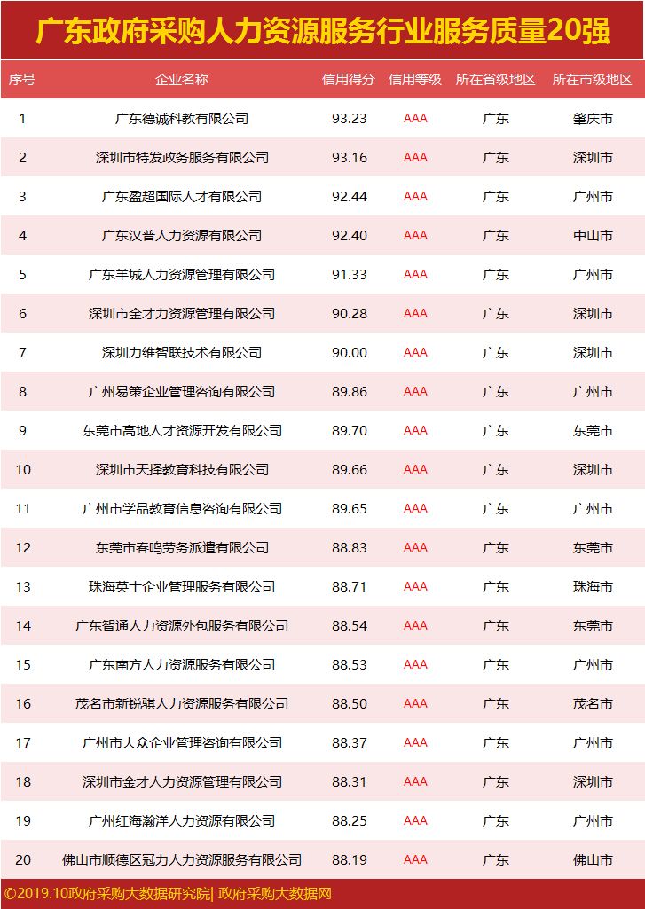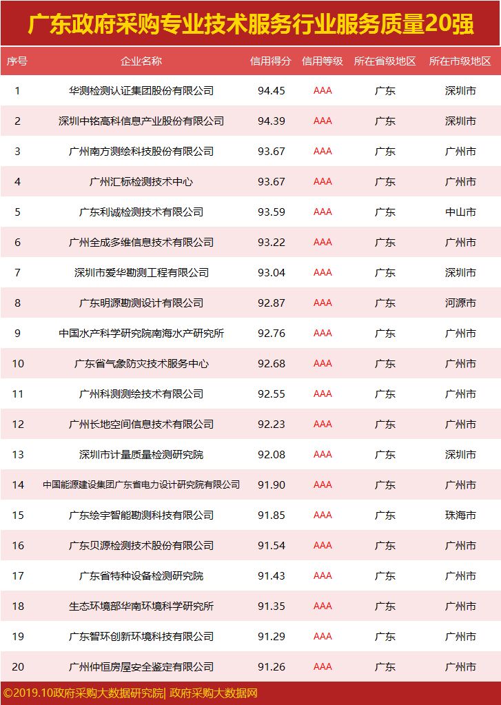 广东政府采购服务质量20强公布,谁拿下行业第一?