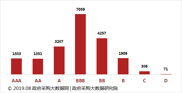 北京政府采购服务质量企业总体样本容量达到20703家,A级及以上信用等级单位7021家,占总体样本的33.91%。B级及以上信用等级单位20246家,占总体样本的97.79%。数据显示,北京市政府采购总体上企业服务质量信用表现较好。