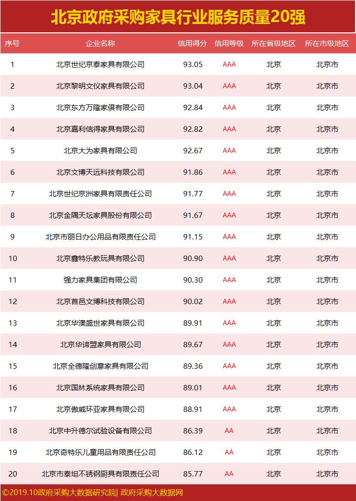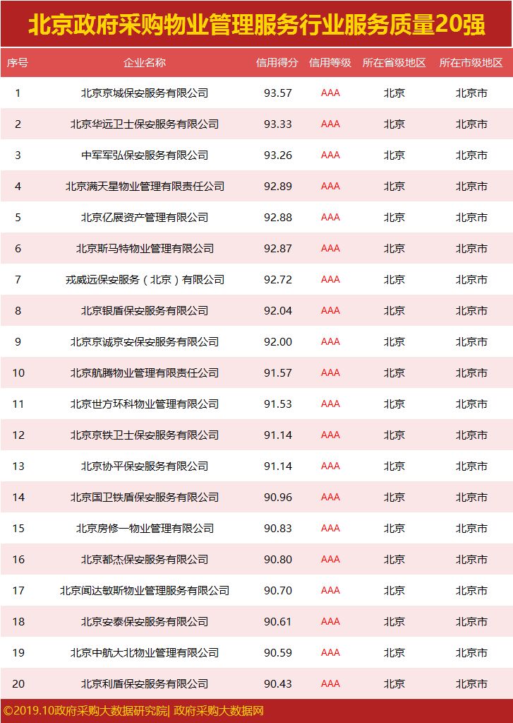 北京政府采购服务质量榜单出炉,都有哪些企业上榜?