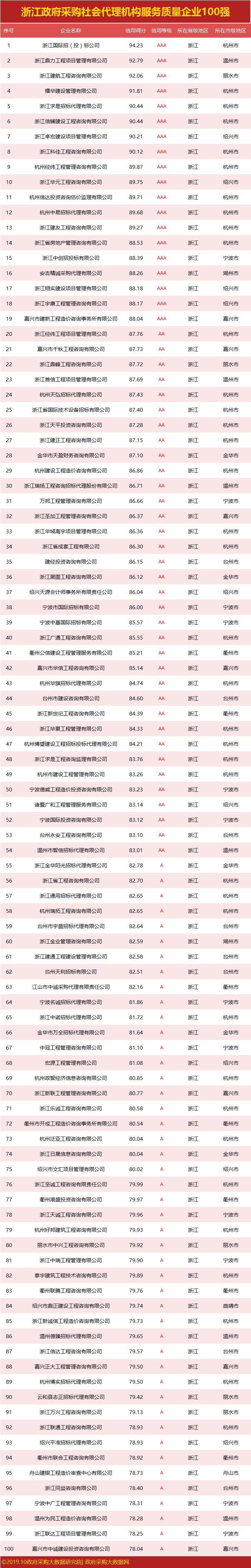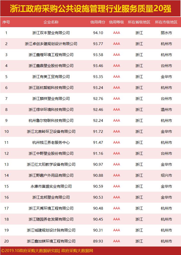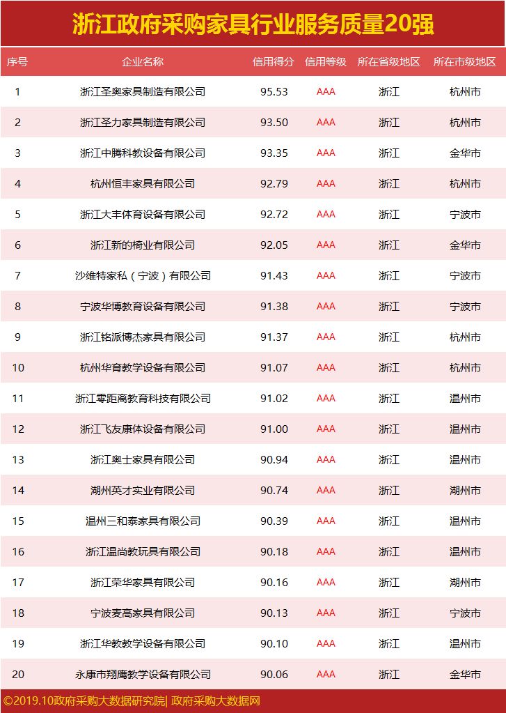 浙江政府采购服务质量排行榜发布,您企业上榜了吗