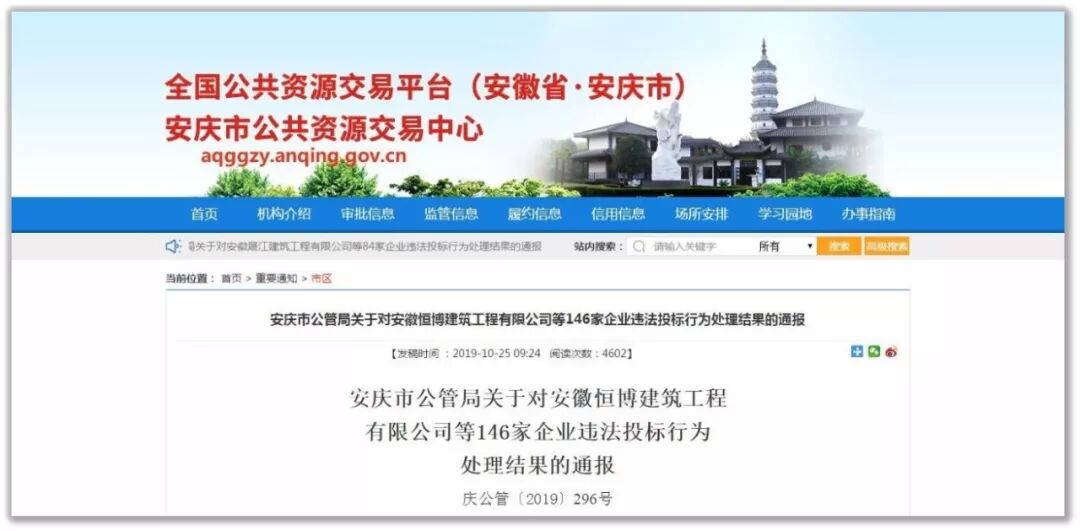 现依据《中华人民共和国招标投标法实施条例》第六十七条,《安庆市公共资源交易监督管理局关于投标人(供应商)及受让人(竞买人)不良行为记录与披露管理暂行办法》第六条第(一)款第12项、第九条之规定及该项目招标文件第二章第17.3.4条之约定,对安徽恒博建筑工程有限公司等146家企业作出如下处理: