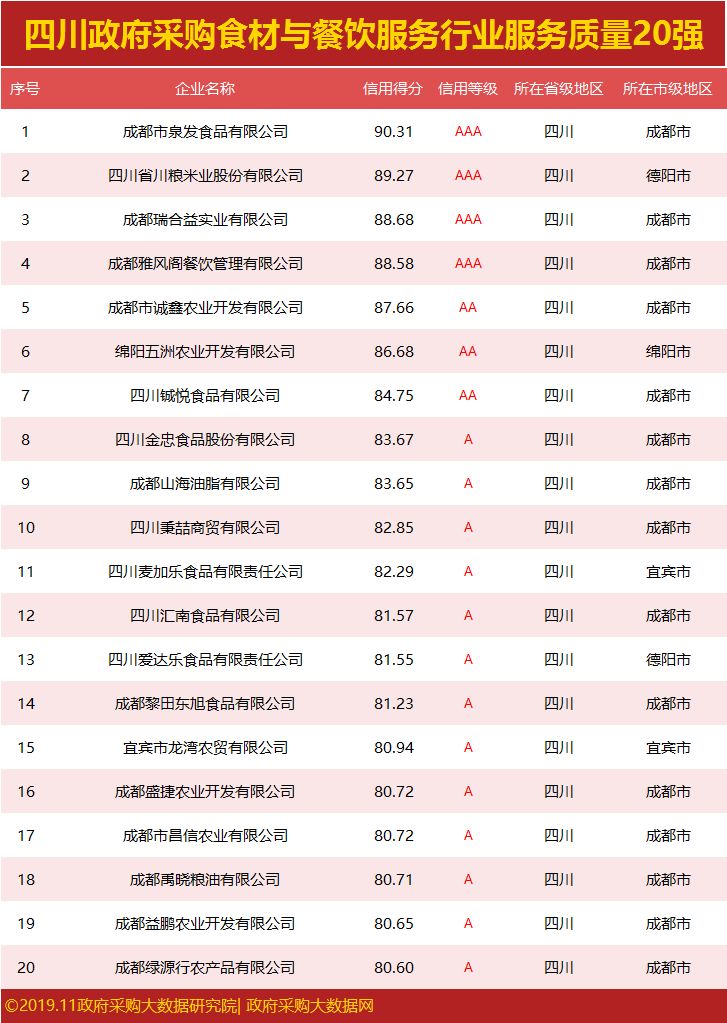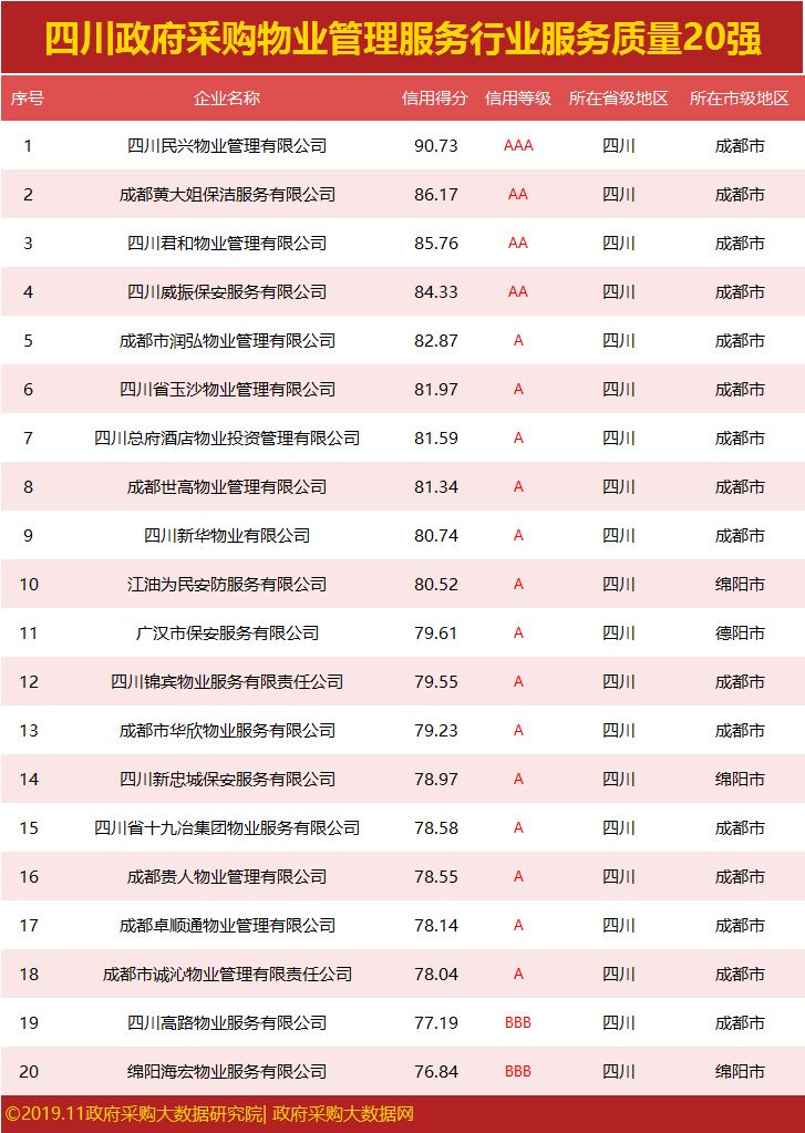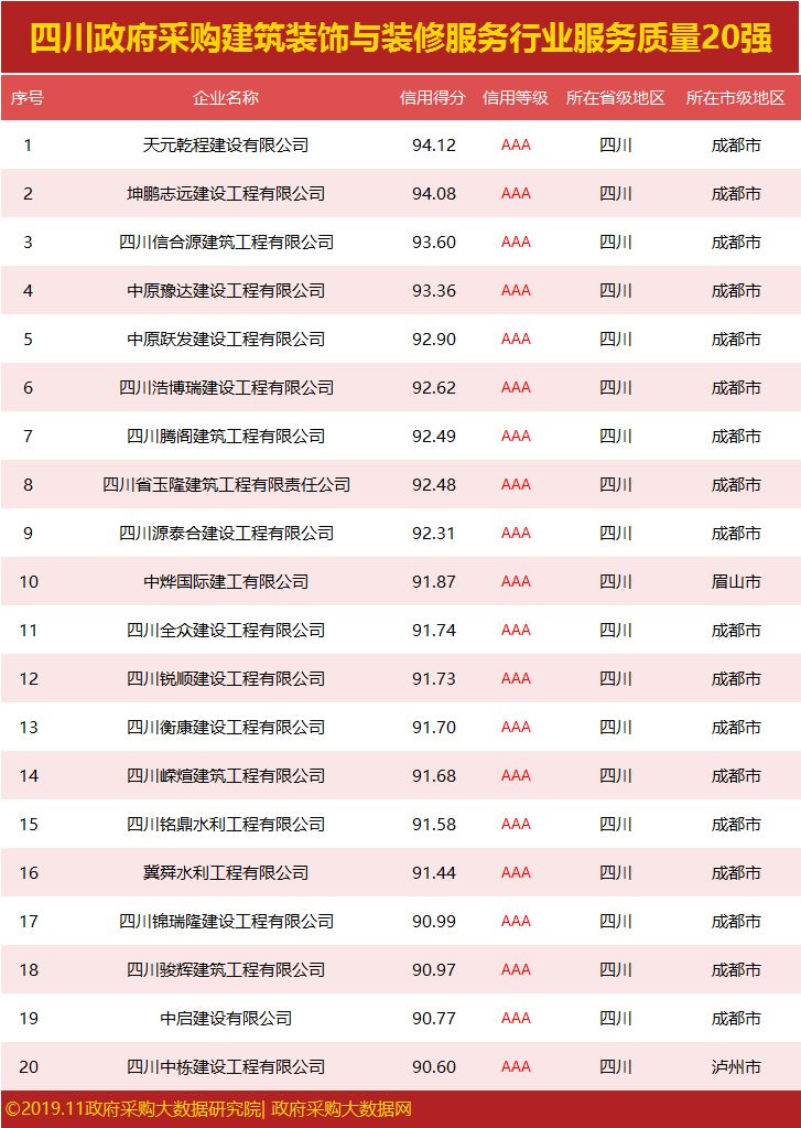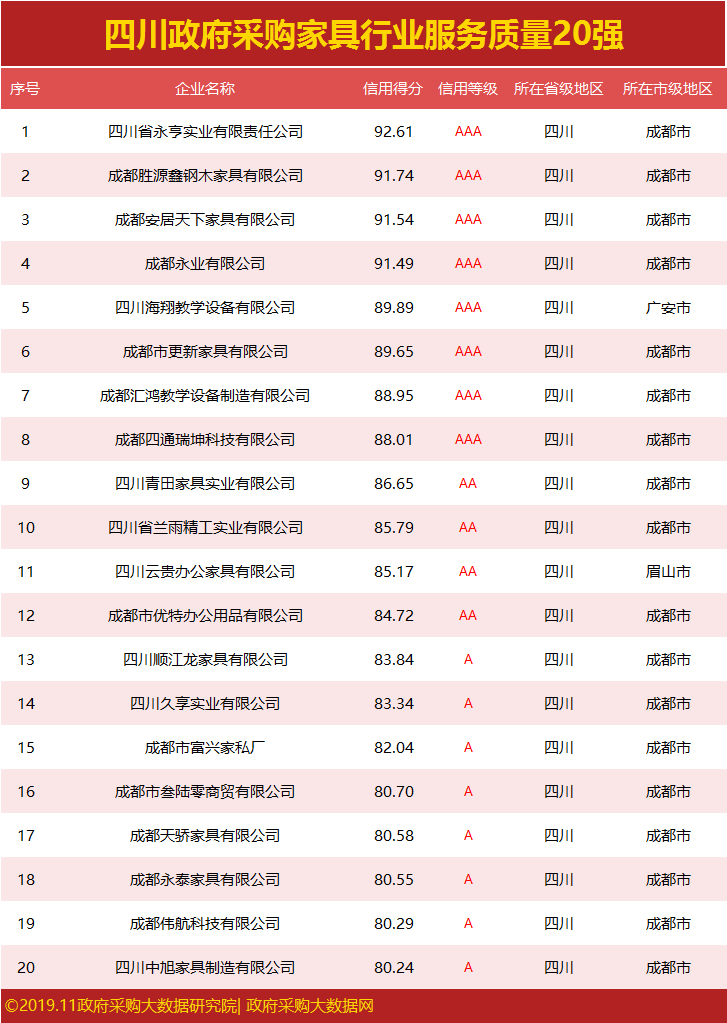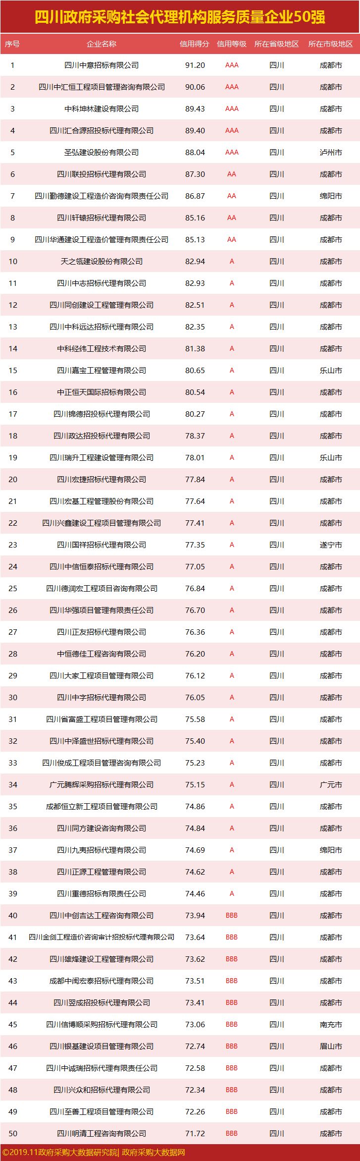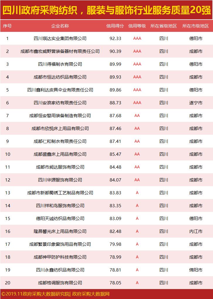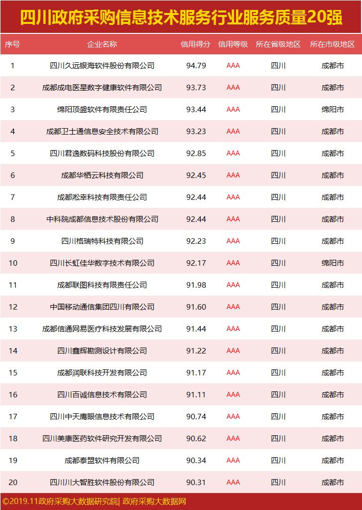 四川政府采购服务质量榜单:6995家企业谁领跑行业第一?