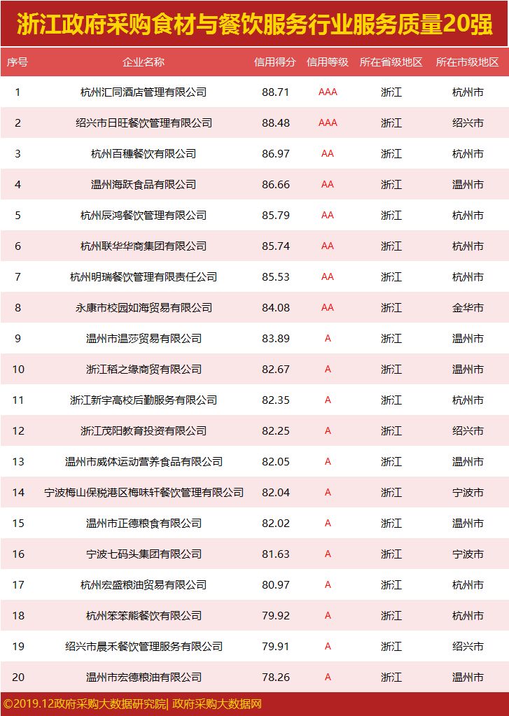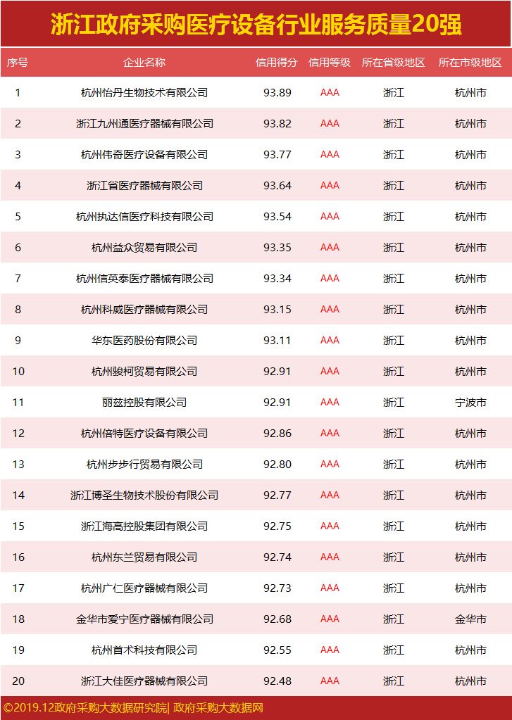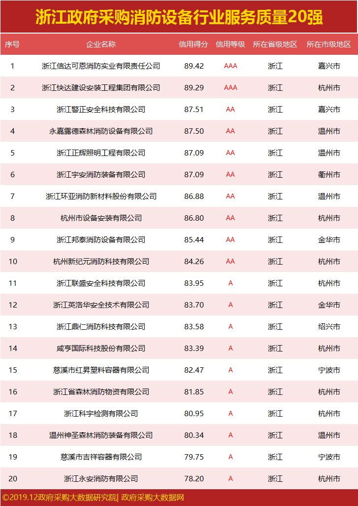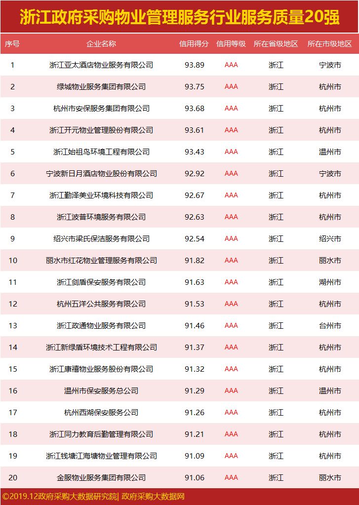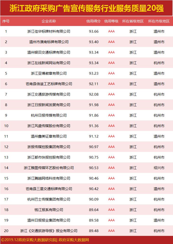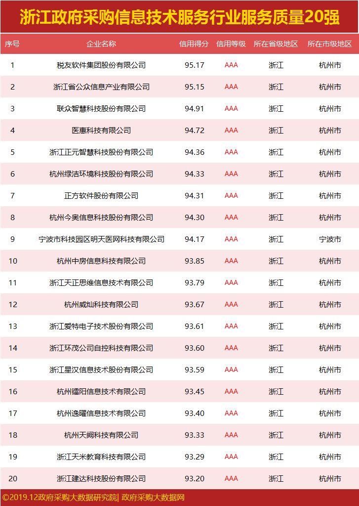 独家发布|浙江政府采购服务质量行业20强花落谁家?