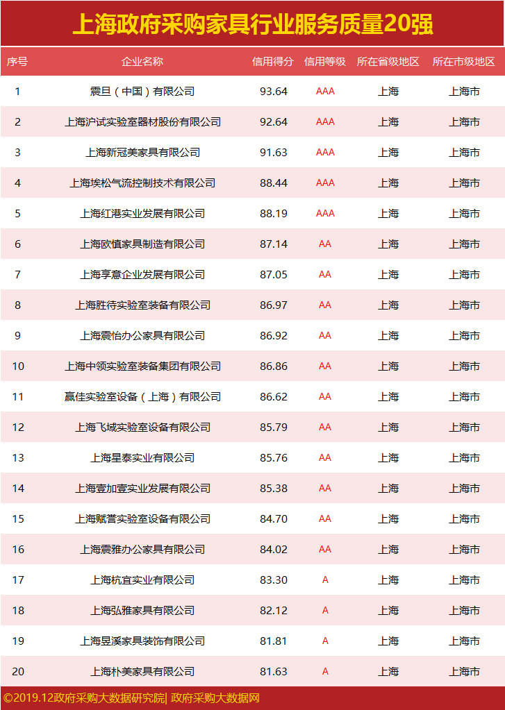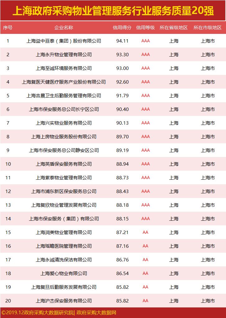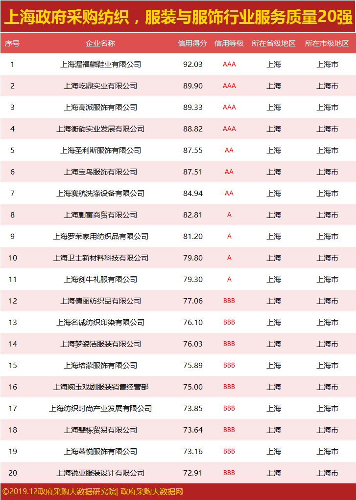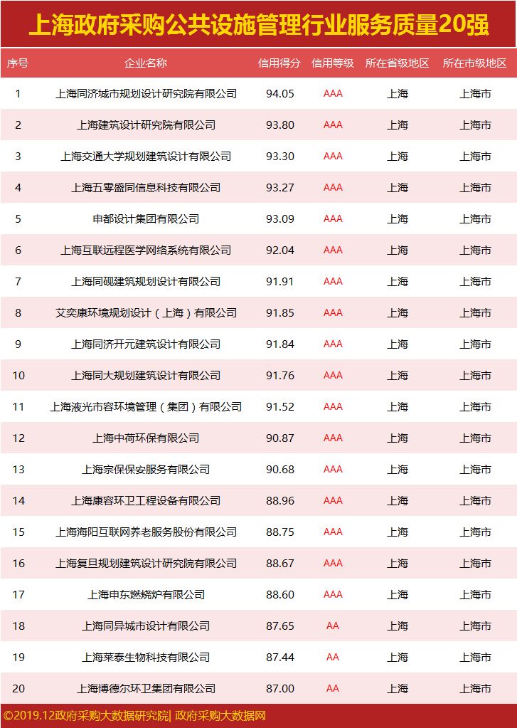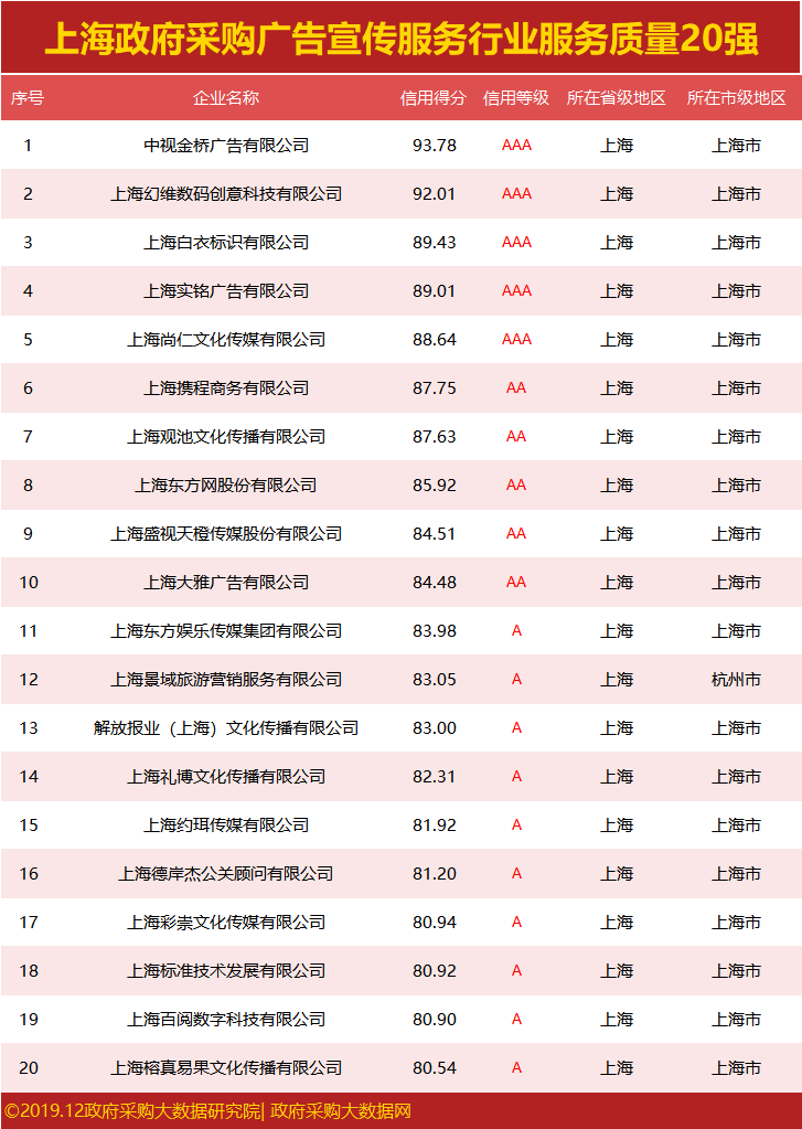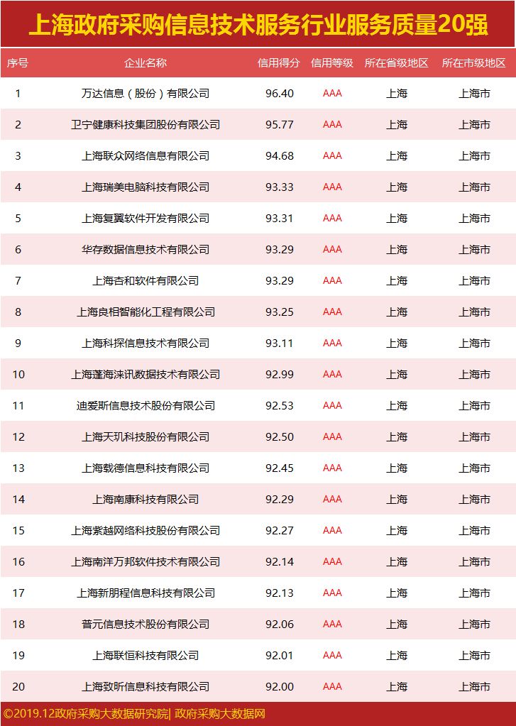 发布|上海政府采购服务质量榜单,谁荣登行业榜首?