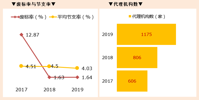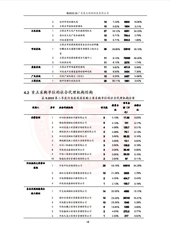 ③代理机构现状:河北政府采购代理机构市场迅速发展,2019年代理机构数增速达到45.78%,大量代理机构进入该行业瓜分市场份额。可见,增强自身执业水平以及提高代理服务质量显得尤其重要。