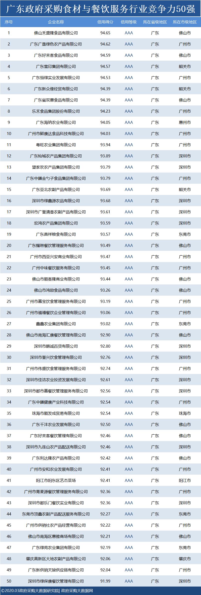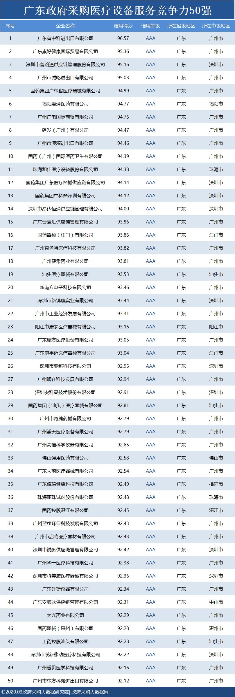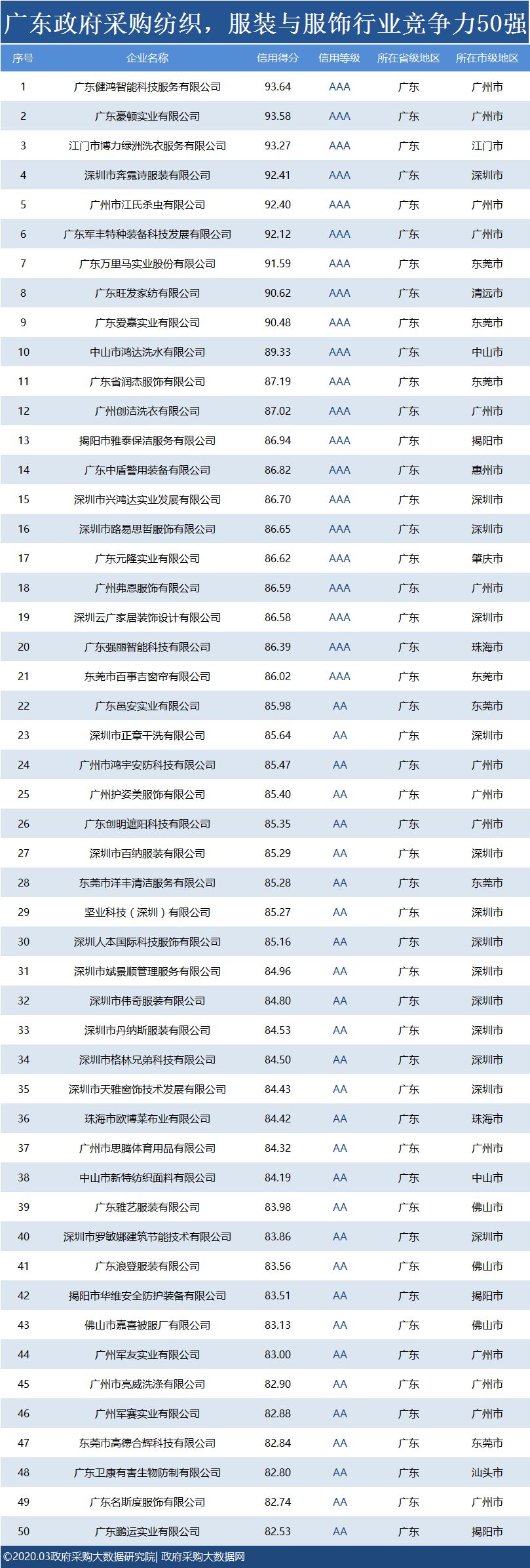 政府采购大数据研究院和政府采购大数据网联合发布:广东政府采购社会代理机构竞争力100强&行业竞争力50强。数据评估区间:2019年01月01日至2019年12月31日。公示时间:2020年03月11日至2020年03月17日。